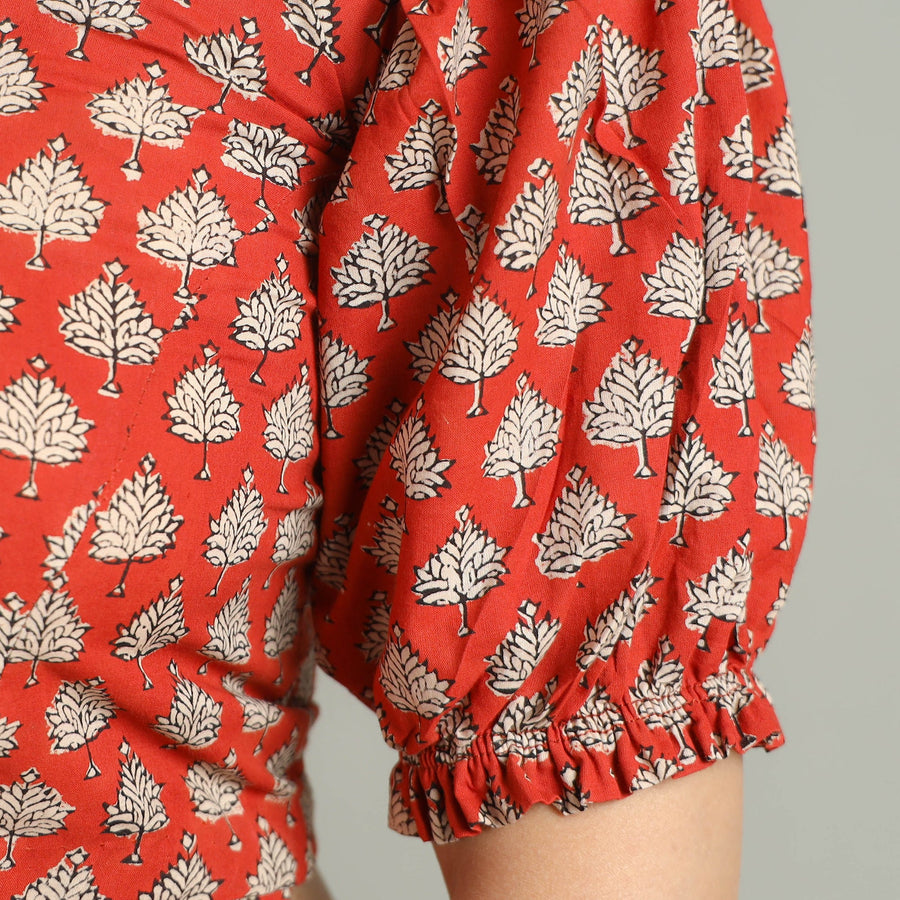 This bagru dabu block-printed stitched blouse is made from natural dyed cotton fabric, offering comfort all day long. It features half sleeves that provide balanced coverage, and the hook lock adds convenience that allows for easy wear and removal, making it perfect for any occasion.