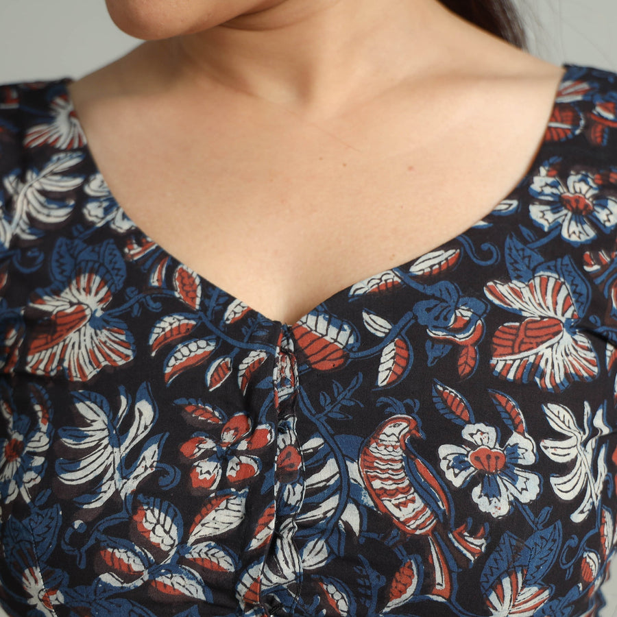 | Material | This bagru dabu block-printed stitched blouse is made from natural dyed cotton fabric, offering comfort all day long. It features half sleeves that provide balanced coverage, and the hook lock adds convenience that allows for easy wear and removal, making it perfect for any occasion. |