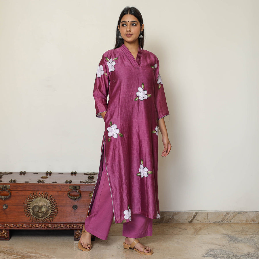 {"id":8013628670147,"title":"Purple - Handpainted Chanderi Silk Kurta Set with Palazzo \u0026 Dupatta 08","handle":"2024-609-1-36-hand-painted-chanderi-silk-kurta-with-palazzo-dupatta-set-08","description":"\u003ctable class=\"gmail-mce-item-table\" width=\"100%\"\u003e\n\u003ctbody\u003e\n\u003ctr style=\"height: 18px;\"\u003e\n\u003ctd style=\"height: 18px;\"\u003e\u003cspan style=\"color: #f1c232;\"\u003eSize\u003c\/span\u003e\u003c\/td\u003e\n\u003ctd style=\"height: 18px;\"\u003eDupatta : Length - 262 cm, Width - 90 cm.\u003c\/td\u003e\n\u003c\/tr\u003e\n\u003ctr style=\"height: 18px;\"\u003e\n\u003ctd style=\"height: 18px;\"\u003e\u003cspan style=\"color: #f1c232;\"\u003eWeight\u003c\/span\u003e\u003c\/td\u003e\n\u003ctd style=\"height: 18px;\"\u003e465 grams (approximately).\u003c\/td\u003e\n\u003c\/tr\u003e\n\u003ctr style=\"height: 49px;\"\u003e\n\u003ctd style=\"height: 49px;\"\u003e\u003cspan style=\"color: #f1c232;\"\u003eMaterial\u003c\/span\u003e\u003c\/td\u003e\n\u003ctd style=\"height: 49px;\"\u003eElevate your style with this exquisite hand-painted chanderi silk cotton suit set from Rajasthan. This set includes a beautifully hand-painted chanderi silk cotton kurta, a matching dupatta, and a plain cotton bottom. This suit material uses azo-free dyes, making it safe and non-harmful for the skin.\u003cbr\u003e\n\u003c\/td\u003e\n\u003c\/tr\u003e\n\u003ctr style=\"height: 17.5px;\"\u003e\n\u003ctd style=\"height: 17.5px;\"\u003e\u003cspan style=\"color: #f1c232;\"\u003eCare\u003c\/span\u003e\u003c\/td\u003e\n\u003ctd style=\"height: 17.5px;\"\u003eDry clean only.\u003c\/td\u003e\n\u003c\/tr\u003e\n\u003ctr\u003e\n\u003ctd\u003e\u003cspan style=\"color: #f1c232;\"\u003eColour\u003c\/span\u003e\u003c\/td\u003e\n\u003ctd\u003e\n\u003cspan\u003eSlight difference in color from the visible product image is possible. \u003c\/span\u003e\u003ca href=\"\/pages\/photos\" target=\"_blank\" title=\"Authentic handcrafted products | itokri’s visual and quality promise\" aria-label=\"Authentic handcrafted products | itokri’s visual and quality promise\"\u003eRead more\u003c\/a\u003e\u003cspan\u003e.\u003c\/span\u003e\n\u003c\/td\u003e\n\u003c\/tr\u003e\n\u003c\/tbody\u003e\n\u003c\/table\u003e","published_at":"2025-12-31T11:15:12+05:30","created_at":"2024-08-09T17:33:40+05:30","vendor":"ITOKRI CASUALS","type":"stitched suit sets","tags":["clearance","diwali gifts","find my size","itokri casuals","made to order","material-chanderi silk","meta-filter-craft process-hand painted","primarycraft_hand-painted","purple","sizeGuide-elasticated-palazzo-size-chart","sizeGuide-long-kurti-size-chart","stitched suit sets","wedding gifts"],"price":489000,"price_min":489000,"price_max":489000,"available":false,"price_varies":false,"compare_at_price":null,"compare_at_price_min":0,"compare_at_price_max":0,"compare_at_price_varies":false,"variants":[{"id":43859767230659,"title":"XS","option1":"XS","option2":null,"option3":null,"sku":"COJP_JP\/KUT\/89\/B\/8\/XS","requires_shipping":true,"taxable":true,"featured_image":null,"available":false,"name":"Purple - Handpainted Chanderi Silk Kurta Set with Palazzo \u0026 Dupatta 08 - XS","public_title":"XS","options":["XS"],"price":489000,"weight":1000,"compare_at_price":null,"inventory_quantity":0,"inventory_management":"shopify","inventory_policy":"deny","barcode":null,"requires_selling_plan":false,"selling_plan_allocations":[],"quantity_rule":{"min":1,"max":null,"increment":1}},{"id":43859767263427,"title":"S","option1":"S","option2":null,"option3":null,"sku":"COJP_JP\/KUT\/89\/B\/8\/S","requires_shipping":true,"taxable":true,"featured_image":null,"available":false,"name":"Purple - Handpainted Chanderi Silk Kurta Set with Palazzo \u0026 Dupatta 08 - S","public_title":"S","options":["S"],"price":489000,"weight":1000,"compare_at_price":null,"inventory_quantity":0,"inventory_management":"shopify","inventory_policy":"deny","barcode":null,"requires_selling_plan":false,"selling_plan_allocations":[],"quantity_rule":{"min":1,"max":null,"increment":1}},{"id":43859767296195,"title":"M","option1":"M","option2":null,"option3":null,"sku":"COJP_JP\/KUT\/89\/B\/8\/M","requires_shipping":true,"taxable":true,"featured_image":null,"available":false,"name":"Purple - Handpainted Chanderi Silk Kurta Set with Palazzo \u0026 Dupatta 08 - M","public_title":"M","options":["M"],"price":489000,"weight":1000,"compare_at_price":null,"inventory_quantity":0,"inventory_management":"shopify","inventory_policy":"deny","barcode":null,"requires_selling_plan":false,"selling_plan_allocations":[],"quantity_rule":{"min":1,"max":null,"increment":1}},{"id":43859767328963,"title":"L","option1":"L","option2":null,"option3":null,"sku":"COJP_JP\/KUT\/89\/B\/8\/L","requires_shipping":true,"taxable":true,"featured_image":null,"available":false,"name":"Purple - Handpainted Chanderi Silk Kurta Set with Palazzo \u0026 Dupatta 08 - L","public_title":"L","options":["L"],"price":489000,"weight":1000,"compare_at_price":null,"inventory_quantity":0,"inventory_management":"shopify","inventory_policy":"deny","barcode":null,"requires_selling_plan":false,"selling_plan_allocations":[],"quantity_rule":{"min":1,"max":null,"increment":1}},{"id":43859767361731,"title":"XL","option1":"XL","option2":null,"option3":null,"sku":"COJP_JP\/KUT\/89\/B\/8\/XL","requires_shipping":true,"taxable":true,"featured_image":null,"available":false,"name":"Purple - Handpainted Chanderi Silk Kurta Set with Palazzo \u0026 Dupatta 08 - XL","public_title":"XL","options":["XL"],"price":489000,"weight":1000,"compare_at_price":null,"inventory_quantity":0,"inventory_management":"shopify","inventory_policy":"deny","barcode":null,"requires_selling_plan":false,"selling_plan_allocations":[],"quantity_rule":{"min":1,"max":null,"increment":1}}],"images":["\/\/itokri.com\/cdn\/shop\/files\/purple-handpainted-chanderi-silk-kurta-set-palazzo-dupatta-08-818.jpg?v=1767160925","\/\/itokri.com\/cdn\/shop\/files\/purple-handpainted-chanderi-silk-kurta-set-palazzo-dup