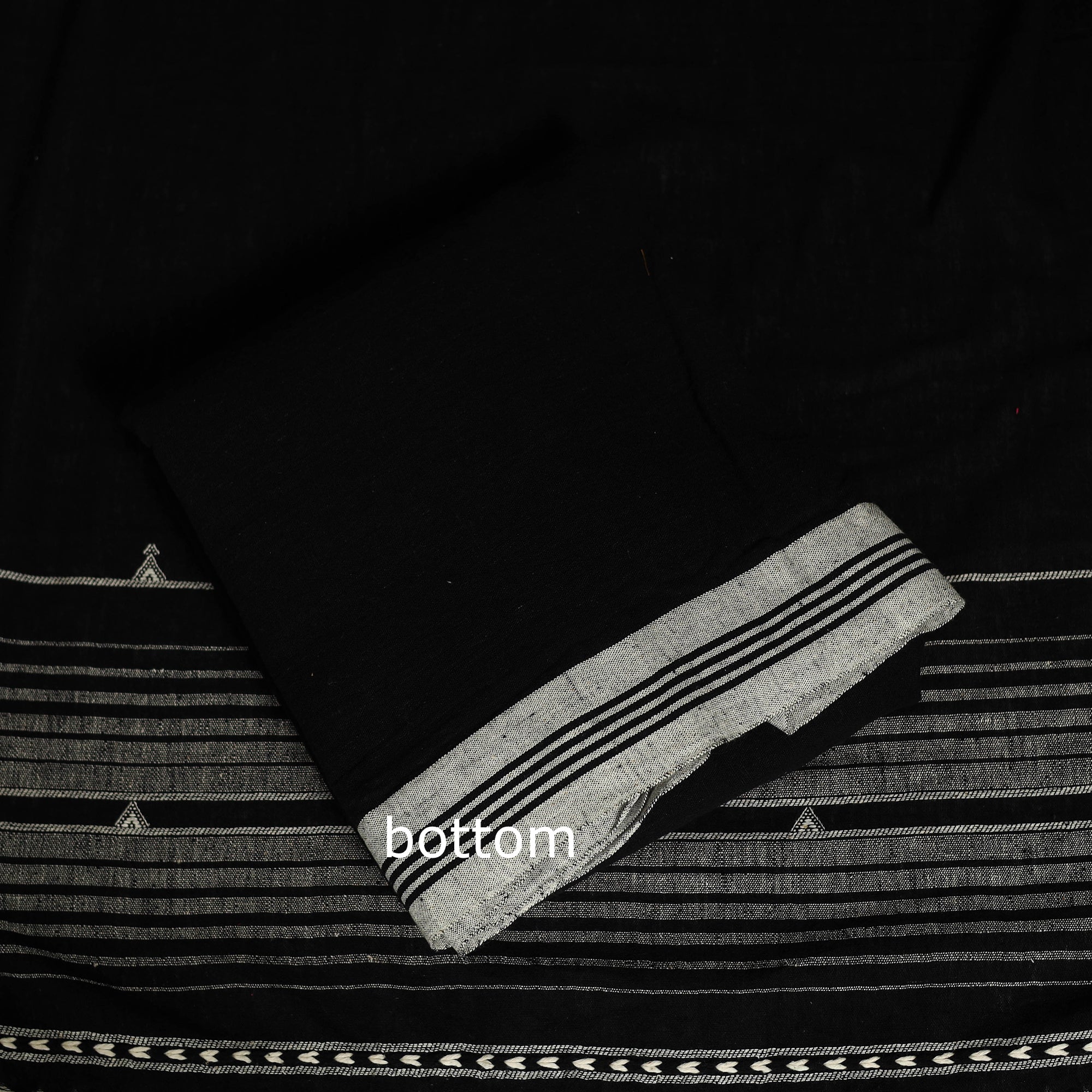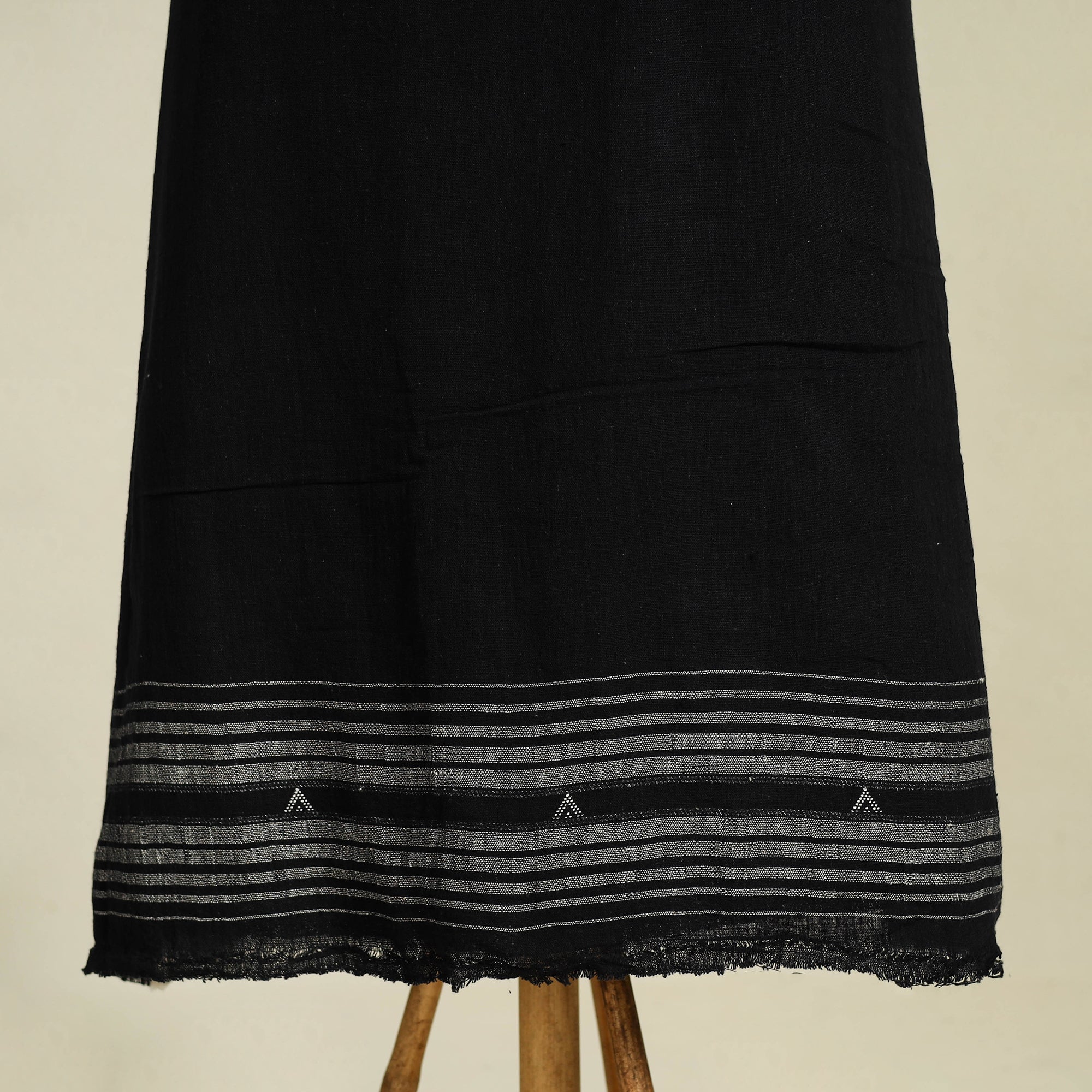This exquisite kutch weaving black handloom organic kala cotton 3-piece suit material set is made by the skilled artisans of Kutch, Gujarat. This set is crafted using 100% certified organic cotton fibers with azo-free dye colors. The kutch handloom weaving technique is employed to create this exquisite set.