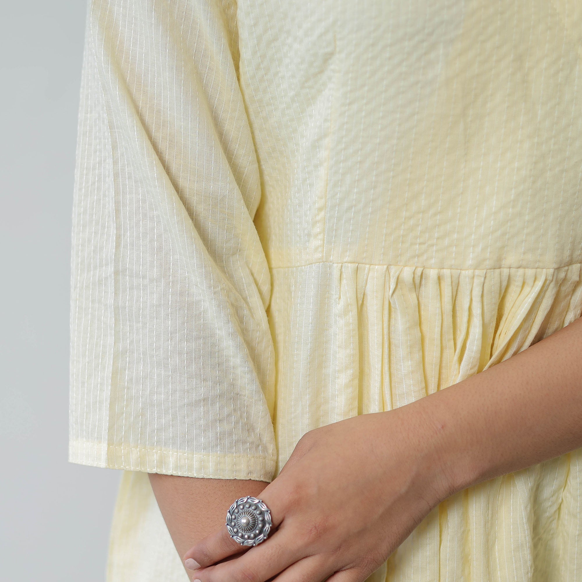 The plain running stitch cotton a-line kurta. This is made from prewashed running stitch cotton fabric. Perfect for your daily outing and for a special occasion.