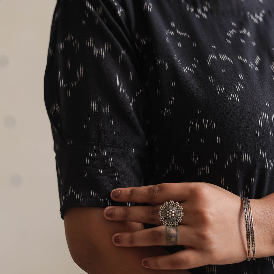 The pochampally ikat weave cotton straight kurta. Crafted from high-quality cotton, it offers comfort and breathability all day. The kurta also features a convenient one-side pocket, perfect for carrying small essentials. Perfect for your daily outing and for a special occasion.
