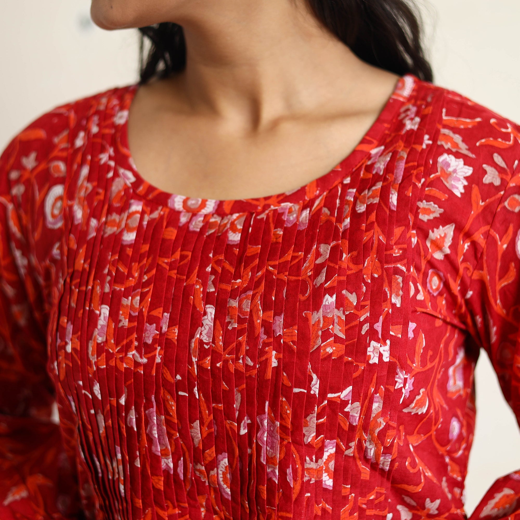 Indulge in the timeless charm of this sanganeri block-printed cotton pintuck flared dress, thoughtfully designed to enhance your style. This dress is crafted from cotton fabric, ensuring a comfortable feel against your skin. This dress features intricate block prints, reflecting the rich heritage and cultural motifs of the region. perfect for your daily outing and for a special occasion.