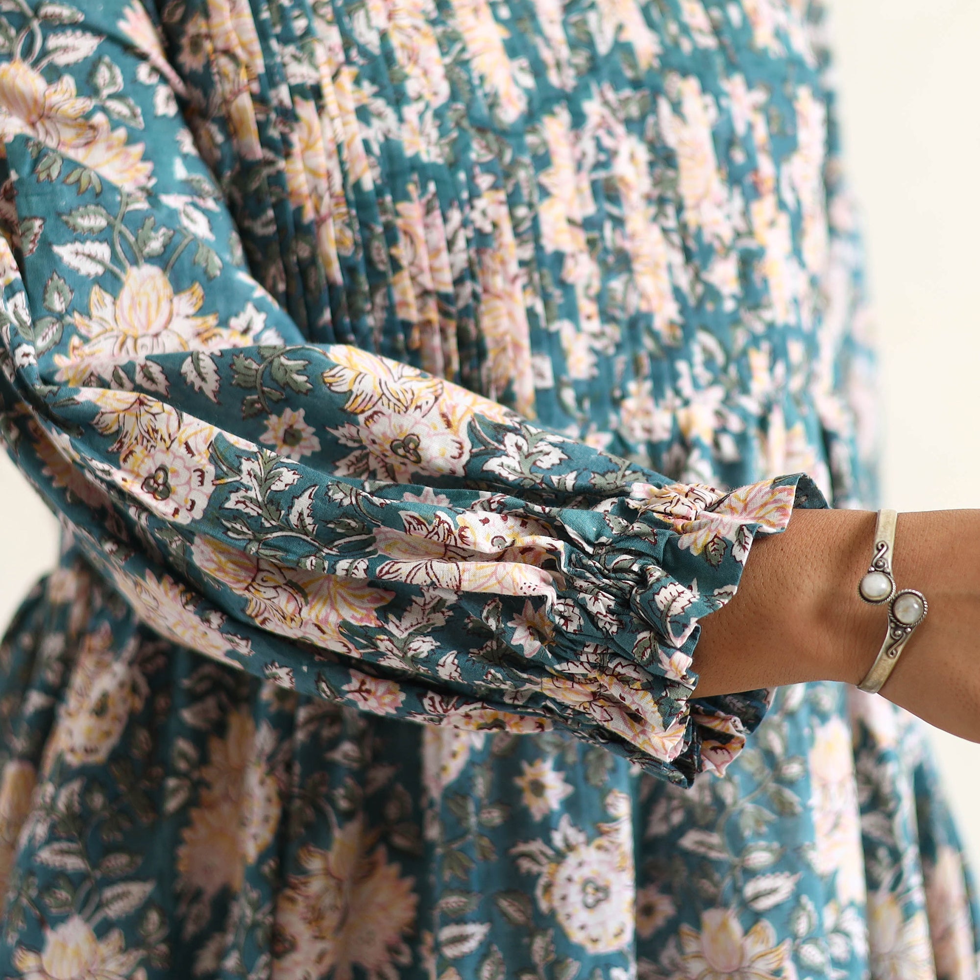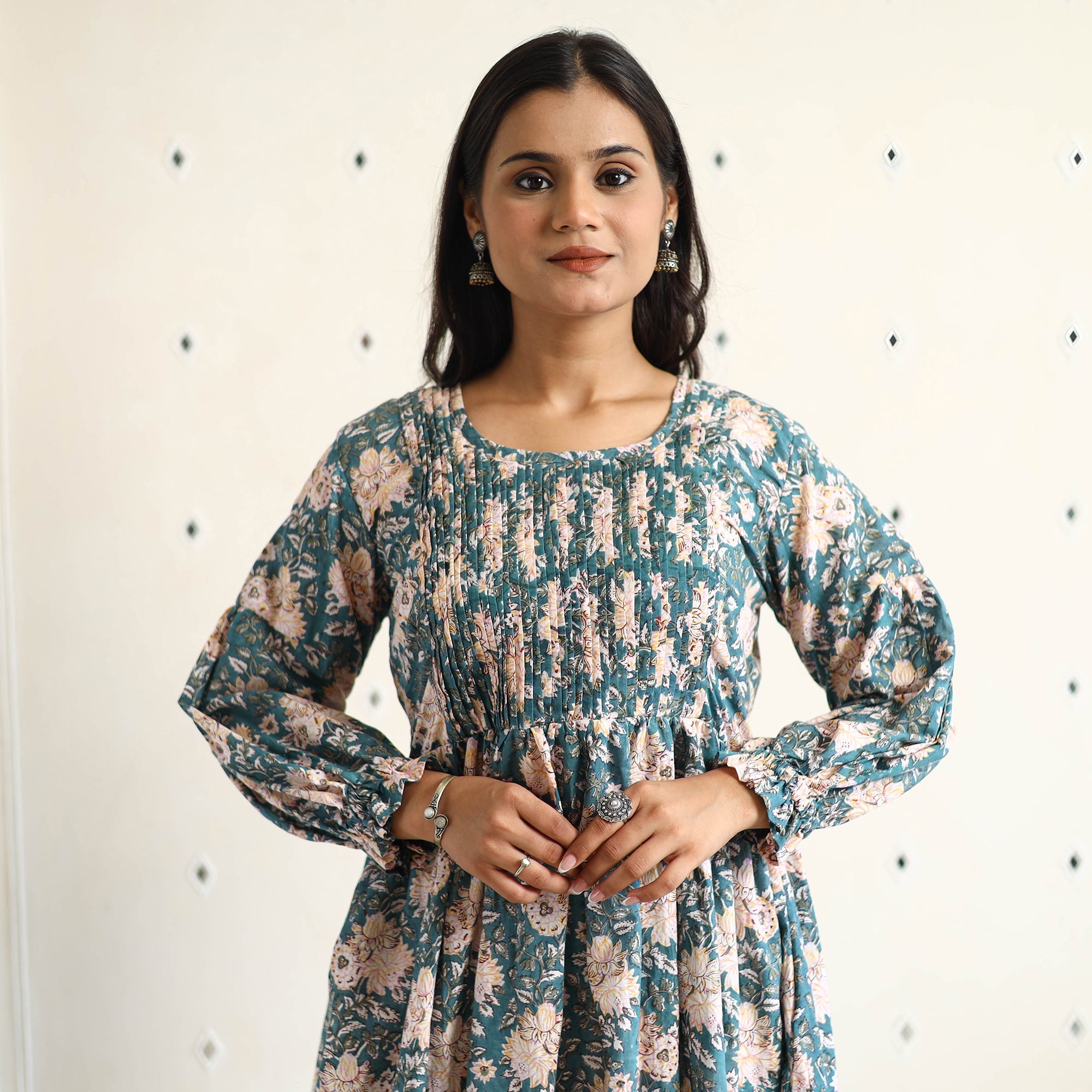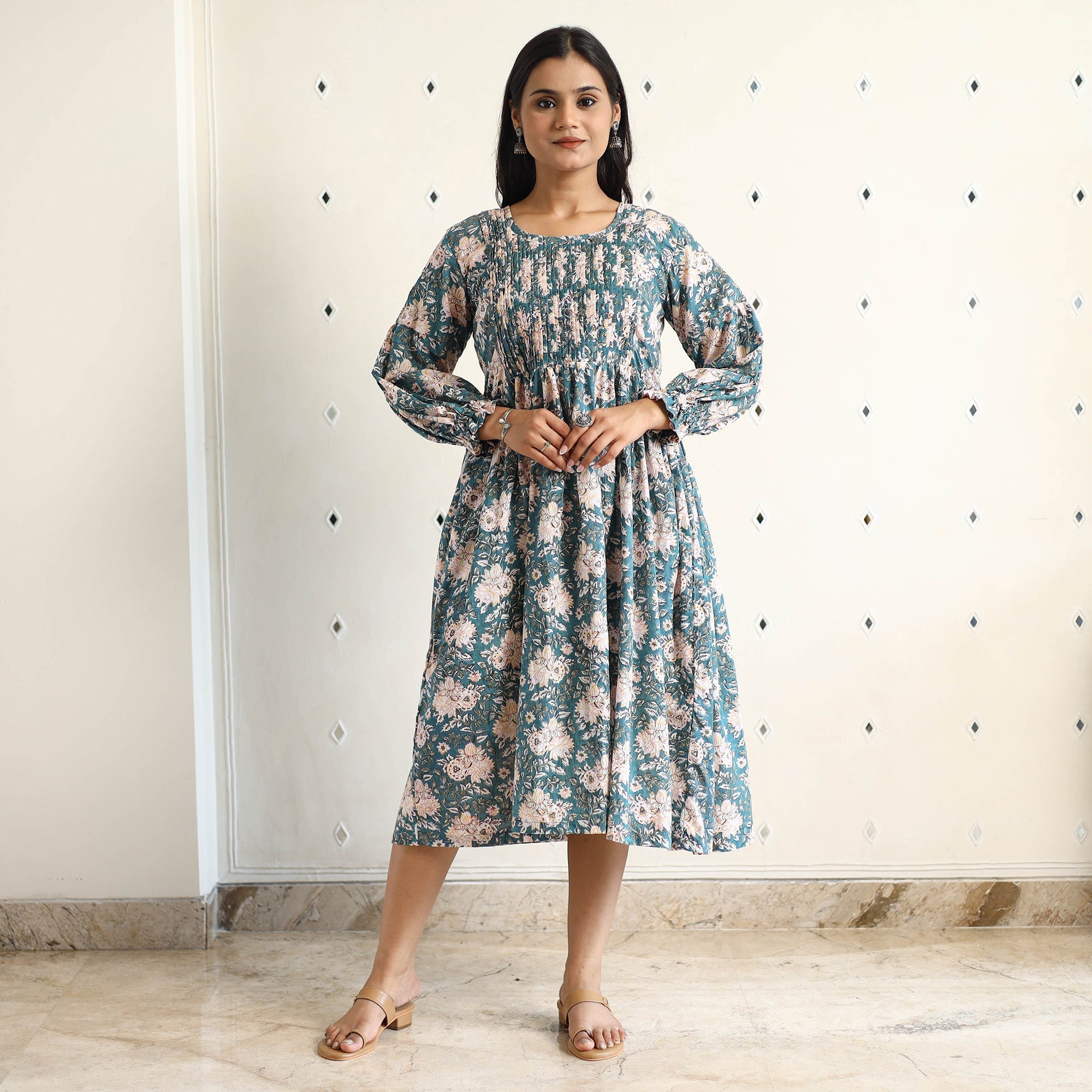 | Material | Indulge in the timeless charm of this sanganeri block-printed cotton pintuck flared dress, thoughtfully designed to enhance your style. This dress is crafted from cotton fabric, ensuring a comfortable feel against your skin. This dress features intricate block prints, reflecting the rich heritage and cultural motifs of the region. perfect for your daily outing and for a special occasion. |