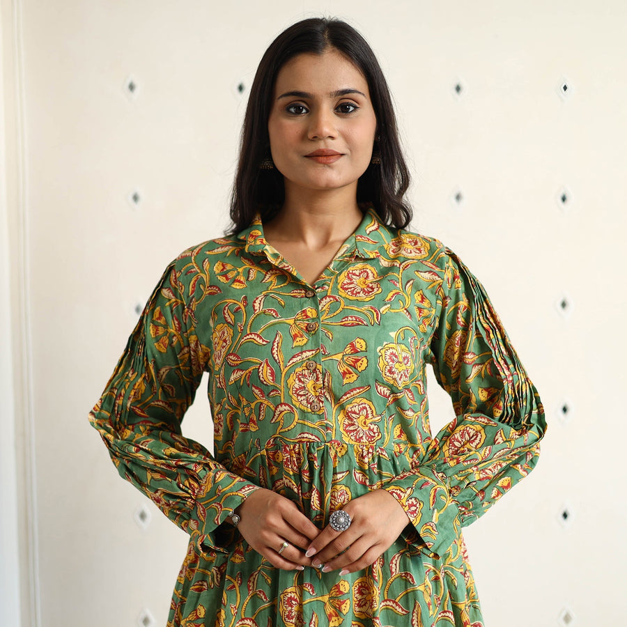 | Material | Indulge in the timeless charm of this sanganeri block-printed cotton flared dress, thoughtfully designed to enhance your style. This dress is crafted from cotton fabric, ensuring a comfortable feel against your skin. This dress features intricate block prints, reflecting the rich heritage and cultural motifs of the region. Perfect for your daily outing and for a special occasion. |