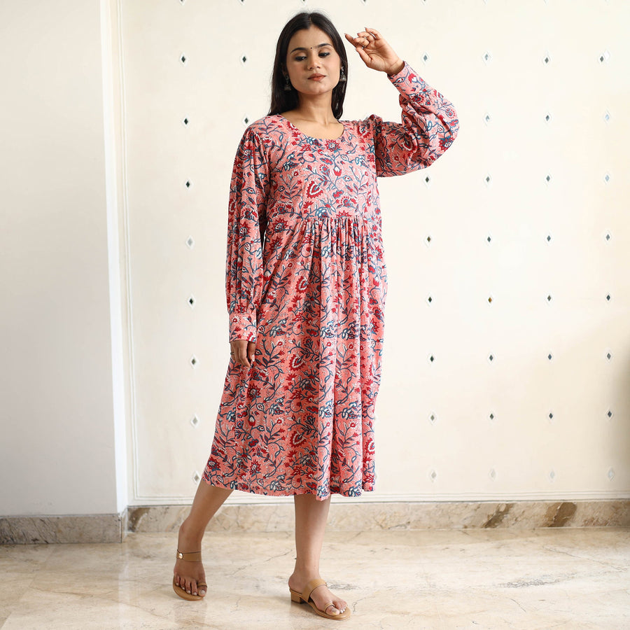 Indulge in the timeless charm of this sanganeri block-printed cotton flared dress, thoughtfully designed to enhance your style. This dress is crafted from cotton fabric, ensuring a comfortable feel against your skin. This dress features intricate block prints, reflecting the rich heritage and cultural motifs of the region. Perfect for your daily outing and for a special occasion.