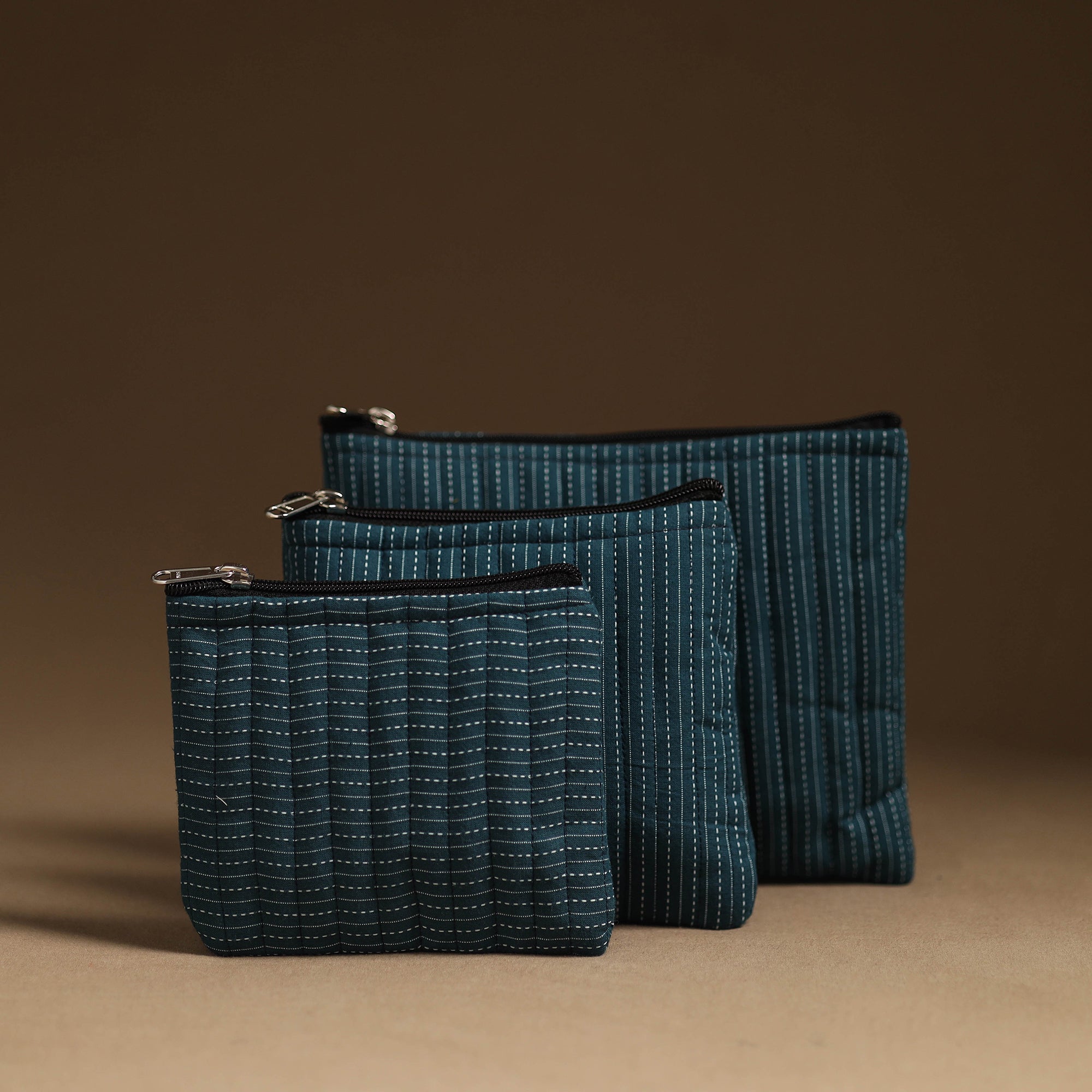 Blue - Handmade Cotton Utility Pouch (Set of 3) 17