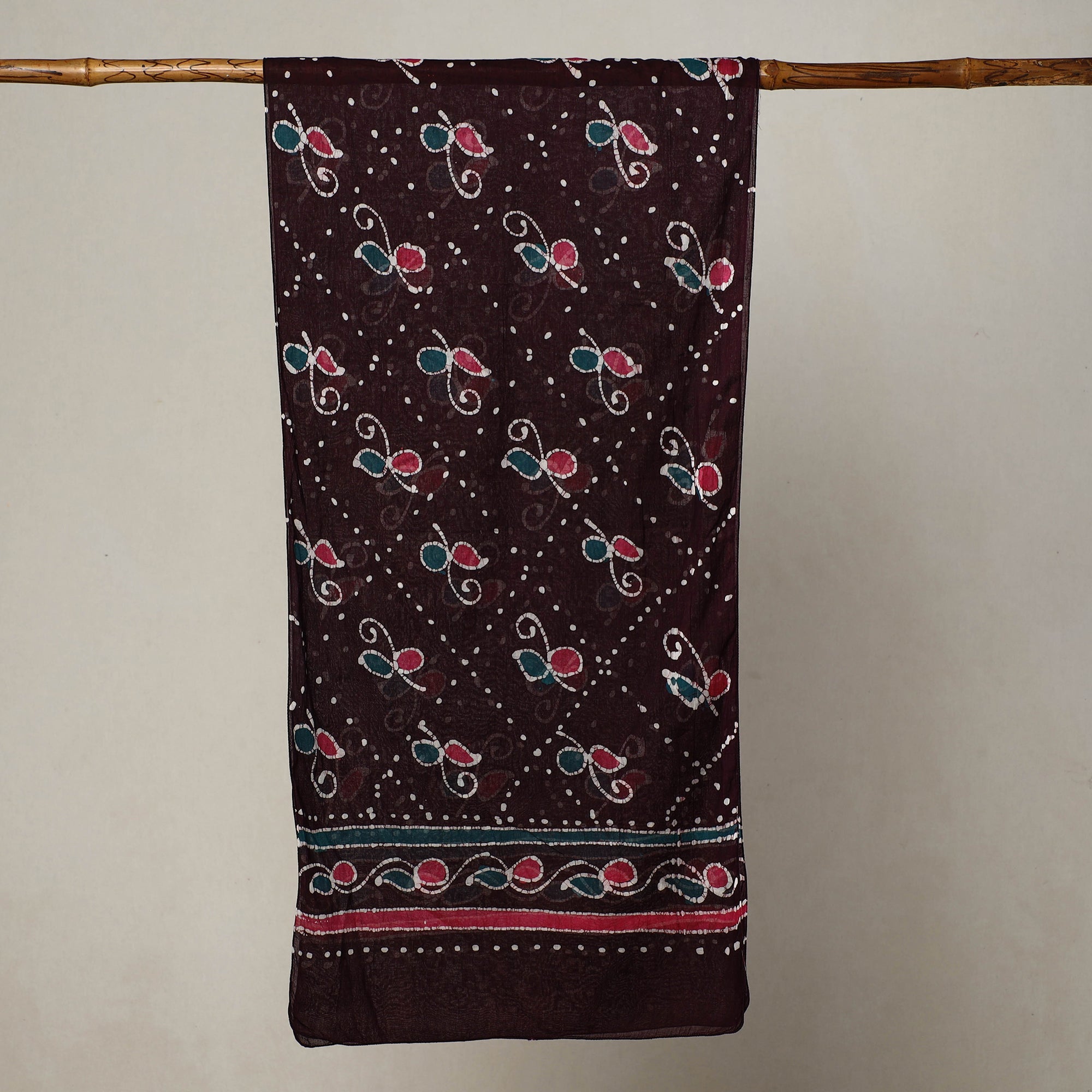 Fine quality brown hand batik printed mul cottonstole from Ujjain, Madhya Pradesh.Batik is a technique of wax-resist dyeing applied to whole cloth, or cloth made using this technique. The traditional designs and motifs in Indian batik are often passed down from one generation to another.