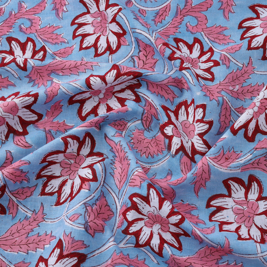 Experience the charm of sanganeri print fabric, renowned for its exquisite block print technique from Rajasthan. This floral cotton fabric showcases intricate designs and vibrant colors. Bleed-free VAT dyes are used. Perfect for both unique clothing and stylish home decor, it embodies the rich cultural heritage of India.