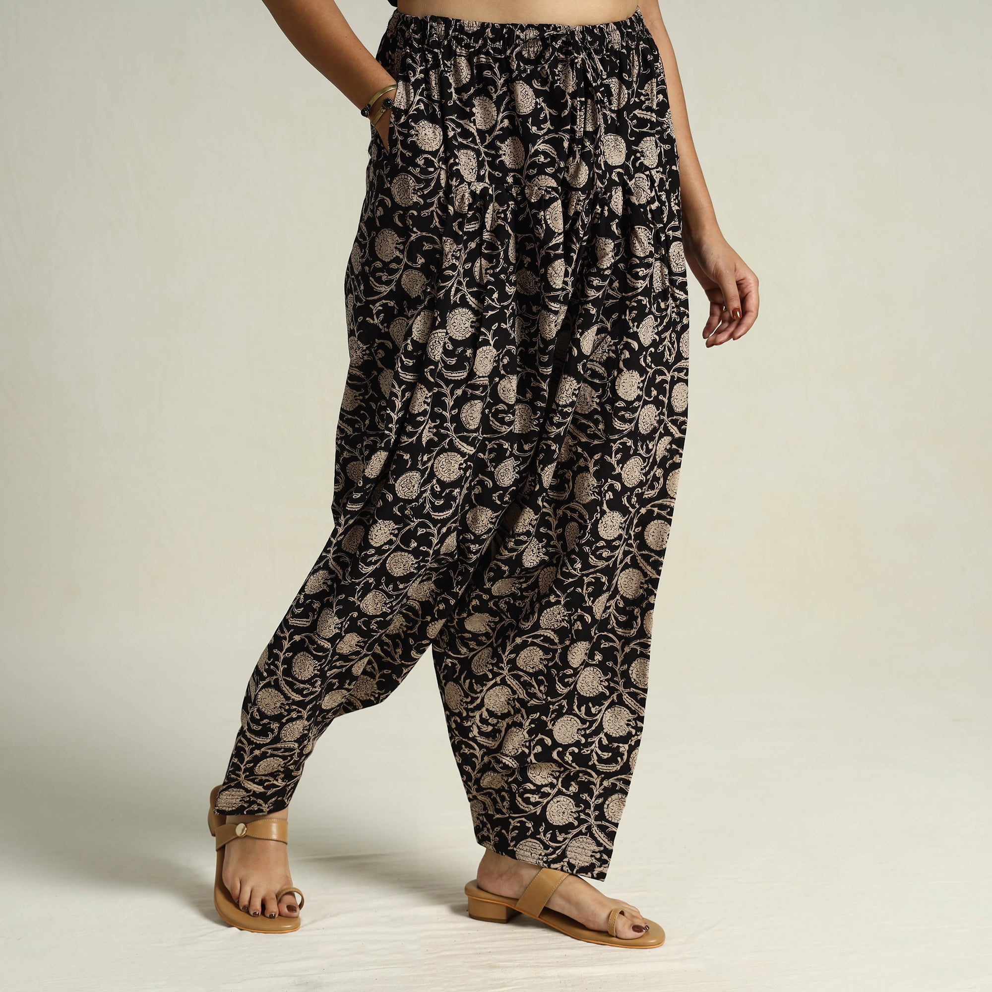 Feel and look beautiful in this bagru block-printed cotton elasticated salwar with side pockets. This cotton salwar features an elasticized waist with a drawstring element that adds to the comfort quotient.