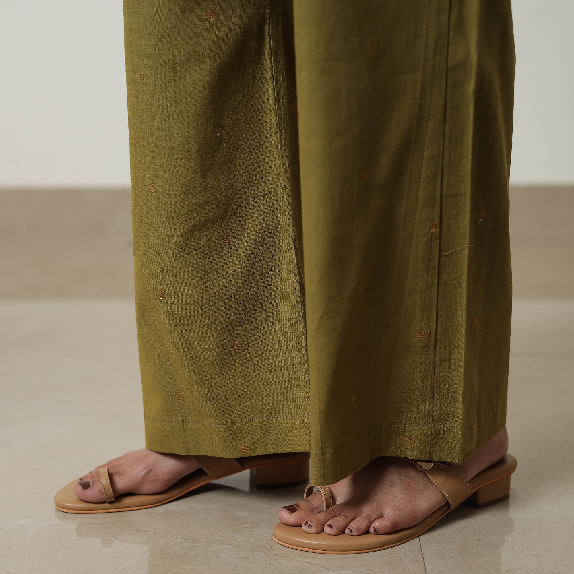 Stay comfortable and stylish in this cotton top and palazzo co-ord set. Made from jacquard prewashed cotton fabric. The elasticized waist palazzo ensures a great fit, while the two side pockets add functionality to this palazzo. The unique design ensures a beautiful and comfortable fit. This piece carries tiny knots, thread pulls, or uneven lines — not flaws, but fingerprints. Every irregularity is a whisper from the hands that made it. It’s what happens when tradition weaves through time, not machines. If you’re looking for perfection, this isn’t it. But if you’re looking for soul — you’ve found it.