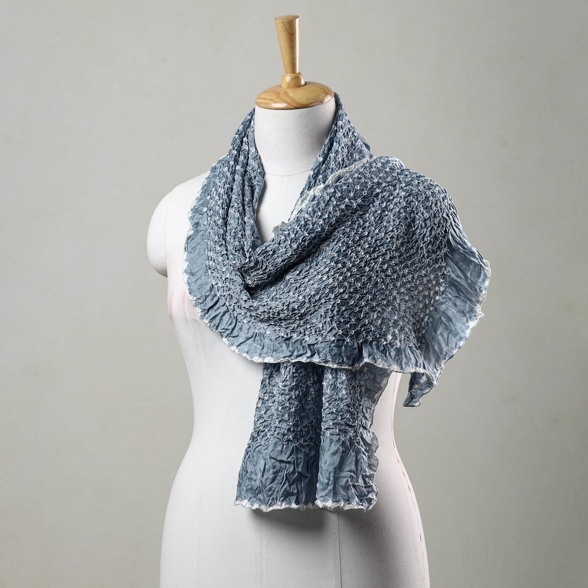Blue - Kutch Handwoven Merino Wool Tie-Dye Bandhani Shawl 07