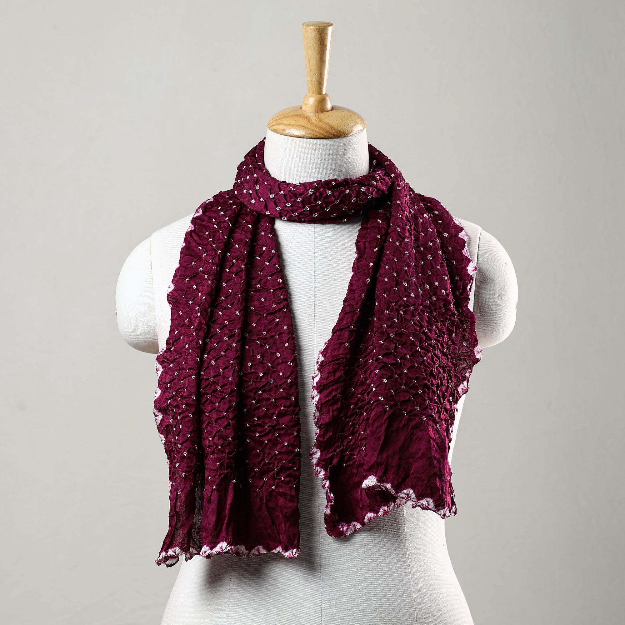 This exquisite kutch bandhani tie-dye stole is crafted from luxurious modal silk, showcasing the intricate art of traditional bandhani. Created by skilled artisans in Kutch, each stole is meticulously hand-tied and dyed to produce its unique, detailed patterns. Soft, lightweight, and versatile, it adds a touch of heritage elegance to any ensemble.