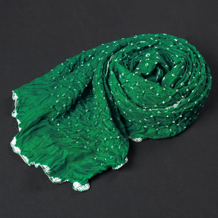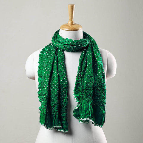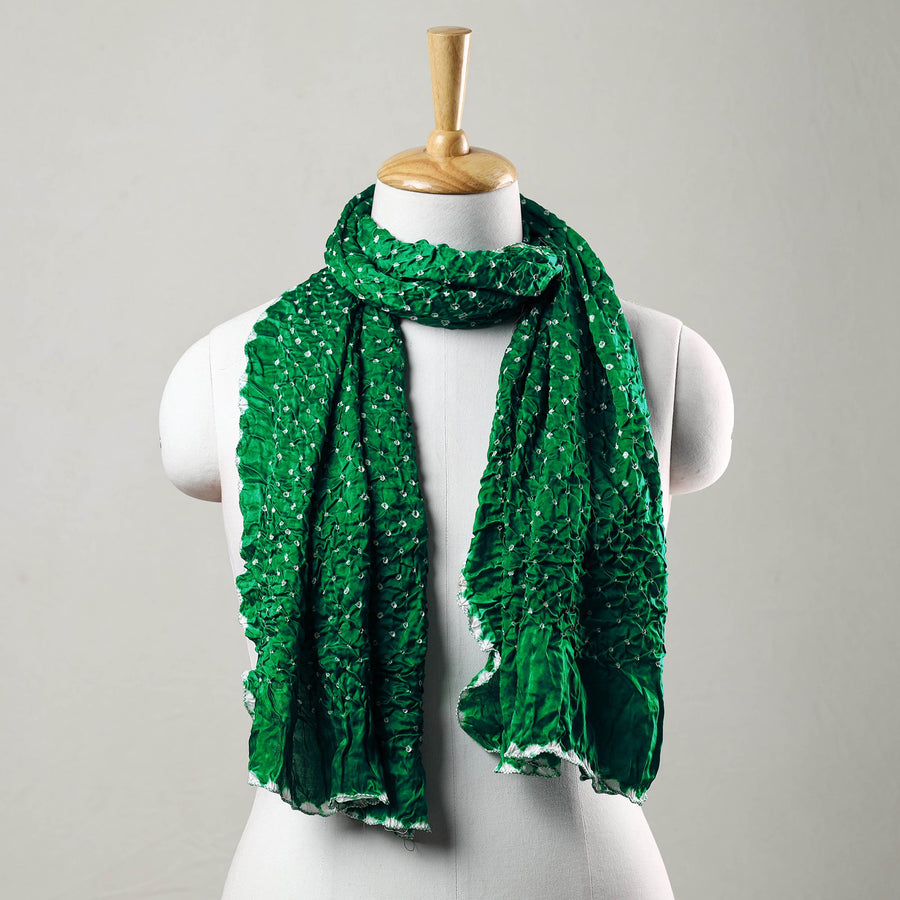 This exquisite kutch bandhani tie-dye stole is crafted from luxurious modal silk, showcasing the intricate art of traditional bandhani. Created by skilled artisans in Kutch, each stole is meticulously hand-tied and dyed to produce its unique, detailed patterns. Soft, lightweight, and versatile, it adds a touch of heritage elegance to any ensemble.