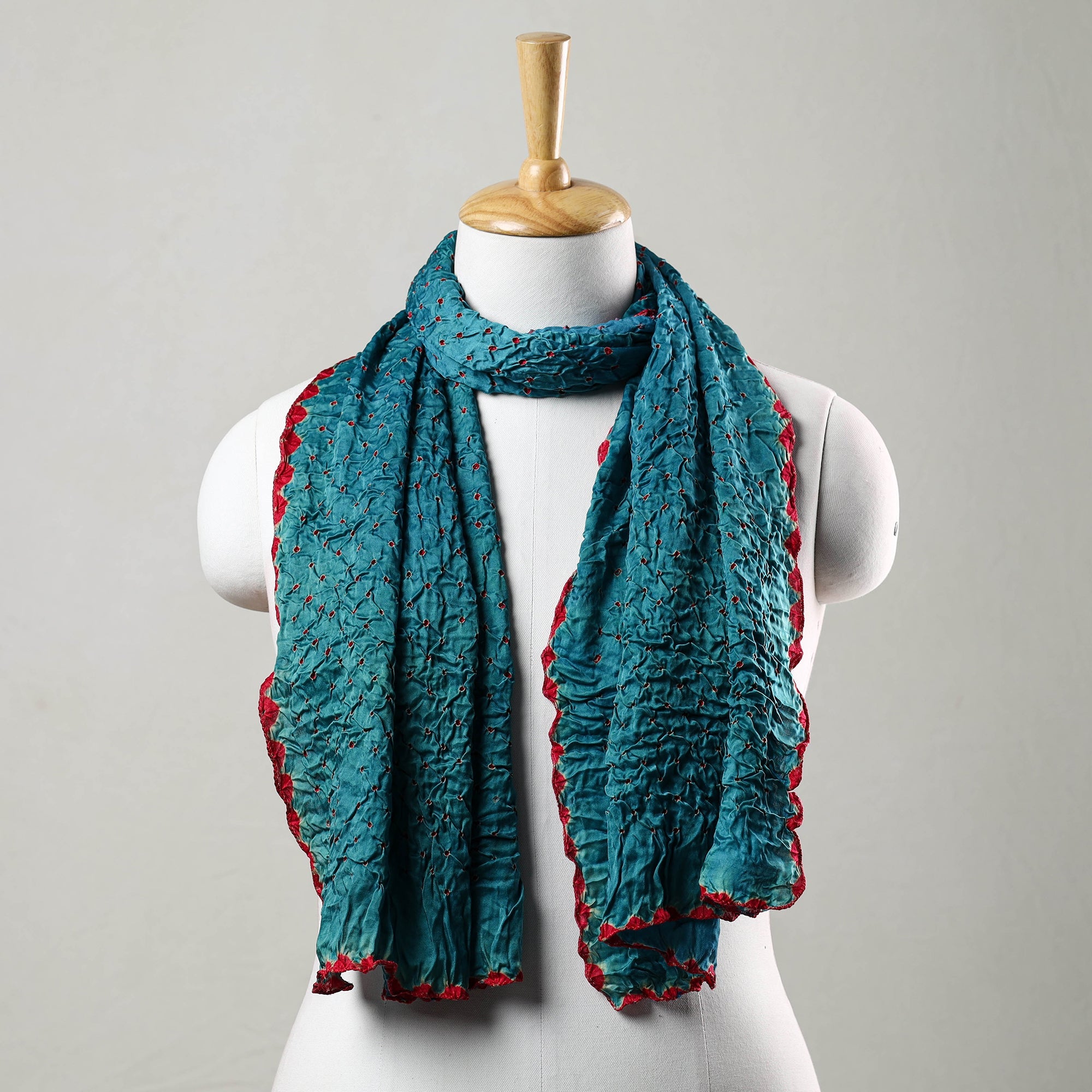 This exquisite blue kutch bandhani tie-dye stole is crafted from luxurious modal silk, showcasing the intricate art of traditional bandhani. Created by skilled artisans in Kutch, each stole is meticulously hand-tied and dyed to produce its unique, detailed patterns. Soft, lightweight, and versatile, it adds a touch of heritage elegance to any ensemble.
