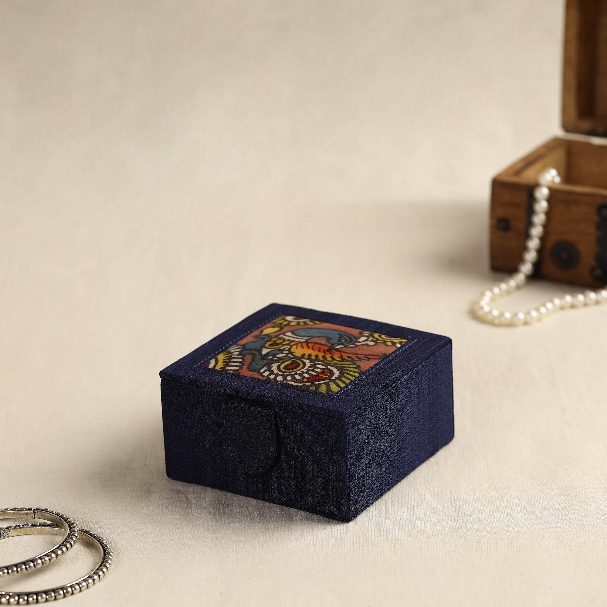 Discover the elegance of our handpainted "Bamboo Kalam’s" blue kalamkari bangle box, meticulously crafted using natural dyed ghicha silk. Ideal for storing your precious bangles, this bangle box is a beautiful blend of tradition and utility.