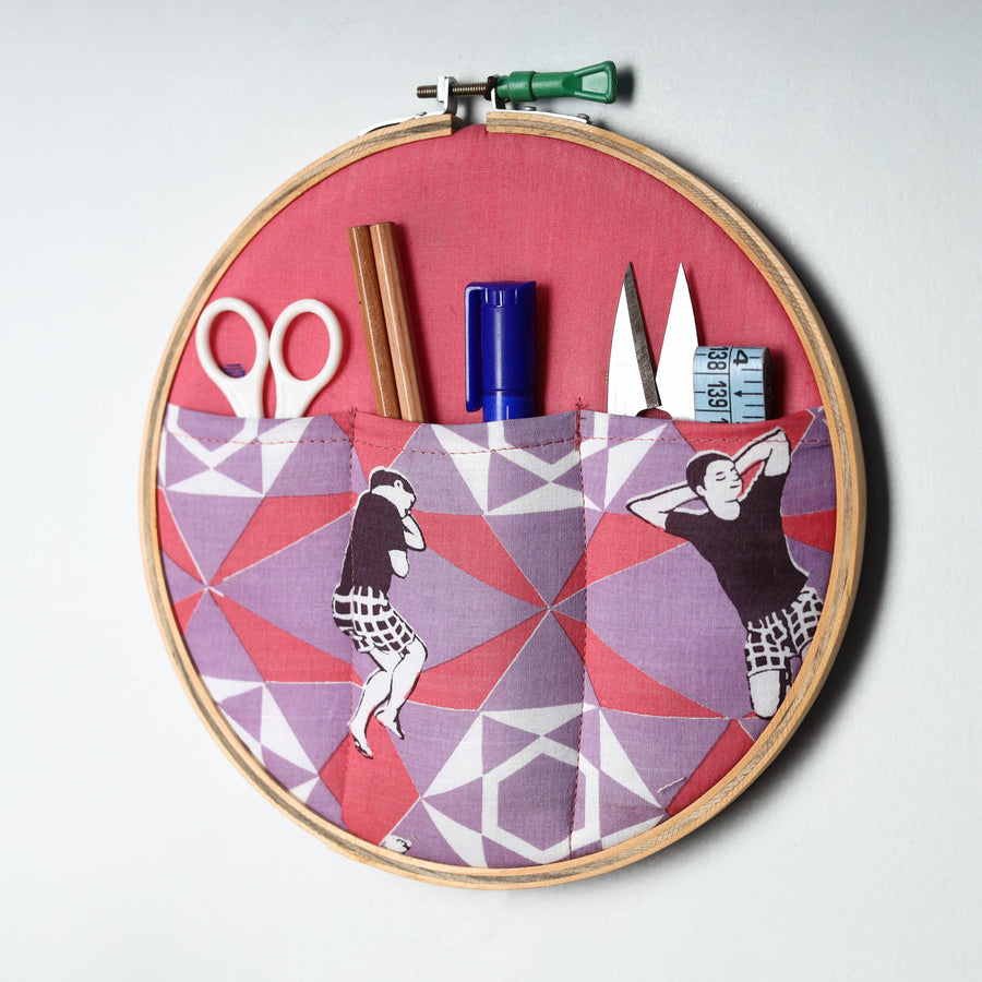 Handcrafted embroidery hoop wall decor is a unique and beautiful addition to any home, offering a stylish way to decorate your home. This hoop wall decor is made from mixed cotton fabrics, handcrafted by skilled artisans. Featuring three functional pockets for added practicality and charm for organizing essentials or displaying decor.