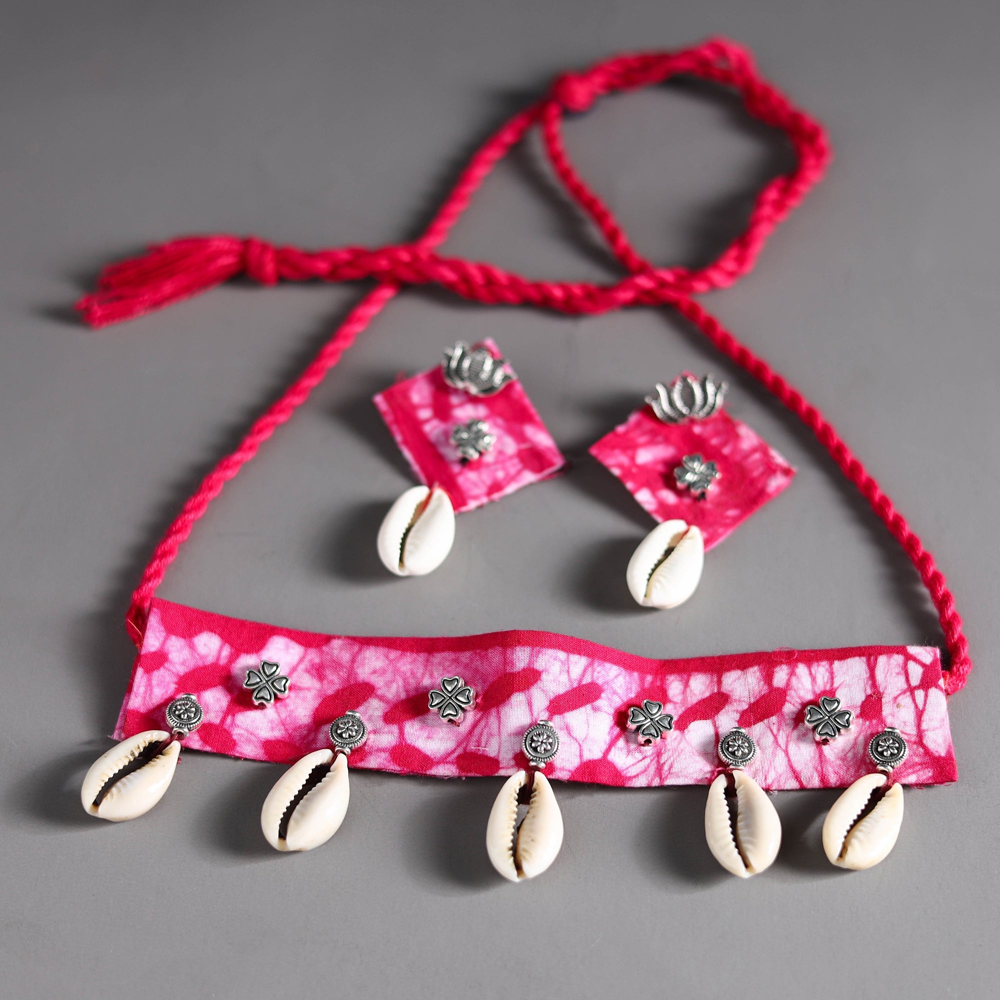Immerse yourself in the elegance of our pink handcrafted GS fabart necklace set, a stunning fusion of tradition and modern design. Crafted with exquisite fabrics, German silver, and delicate thread work, this necklace set represents the finest of Indian artisanal craftsmanship. Perfect for any occasion, this versatile choker set adds a touch of sophistication to your wardrobe.