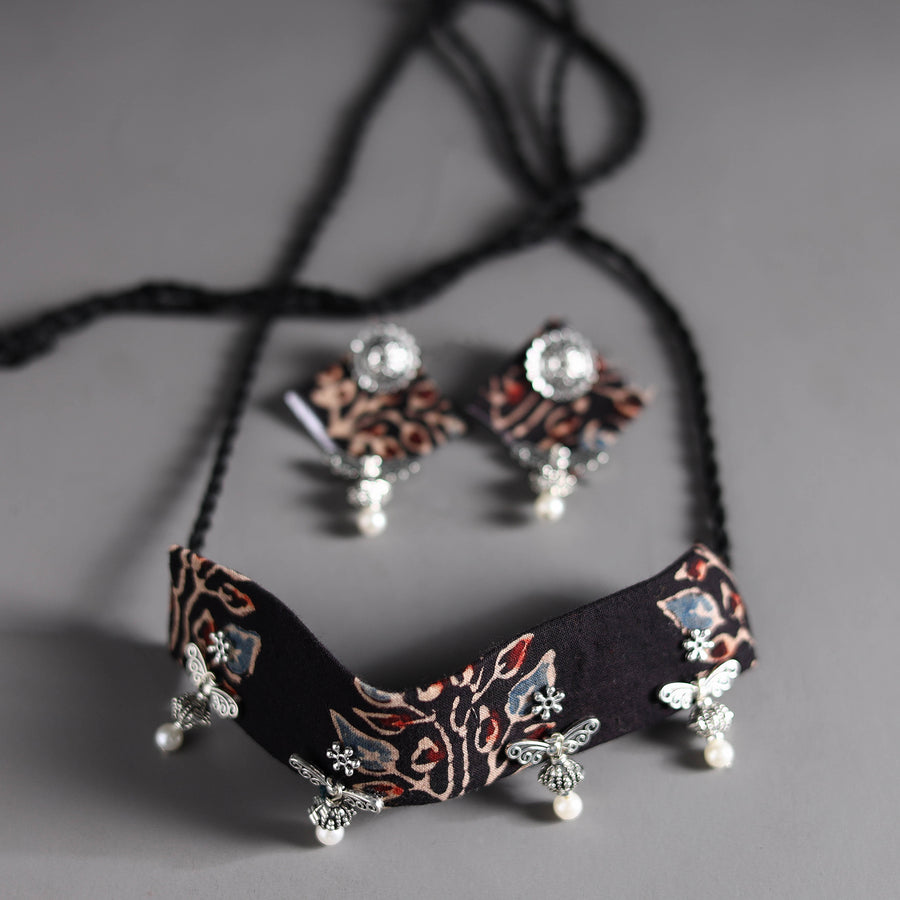 Immerse yourself in the elegance of our black handcrafted GS fabart necklace set, a stunning fusion of tradition and modern design. Crafted with exquisite fabrics, German silver, and delicate thread work, this necklace set represents the finest of Indian artisanal craftsmanship. Perfect for any occasion, this versatile choker set adds a touch of sophistication to your wardrobe.