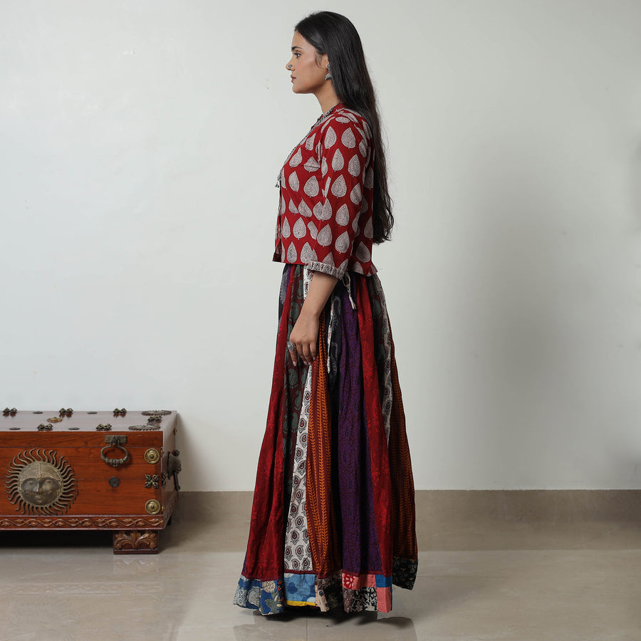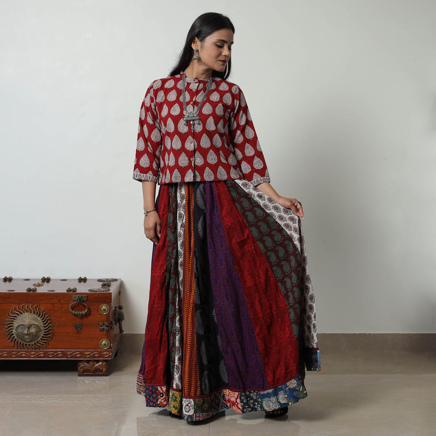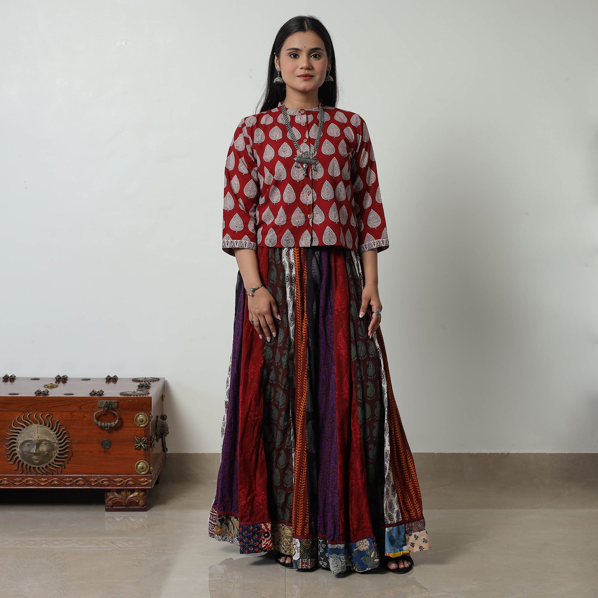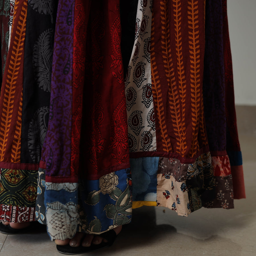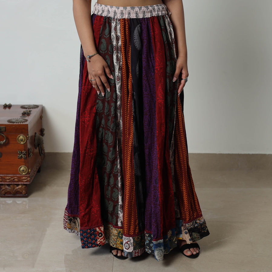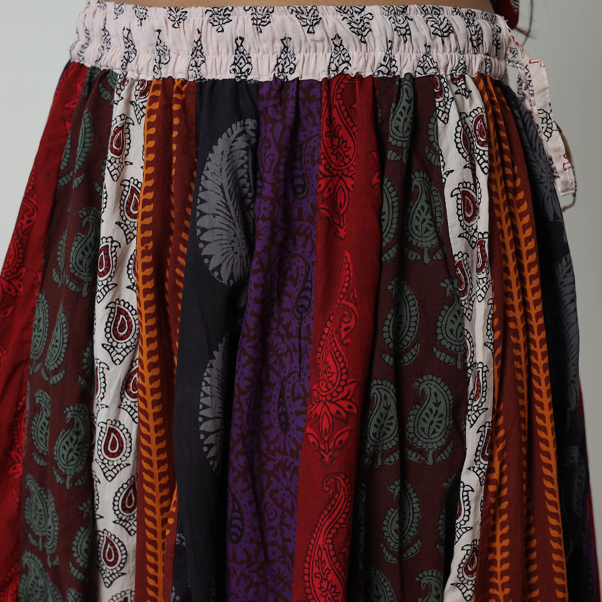 Enhance your ethnic wardrobe with our bagh block printed skirt. This stunning piece, made with the intricate Bagh printing technique from Madhya Pradesh, reflects the rich cultural heritage of India. The patchwork 24 Kali design adds a unique touch, while the waist tie-up ensures a comfortable fit.