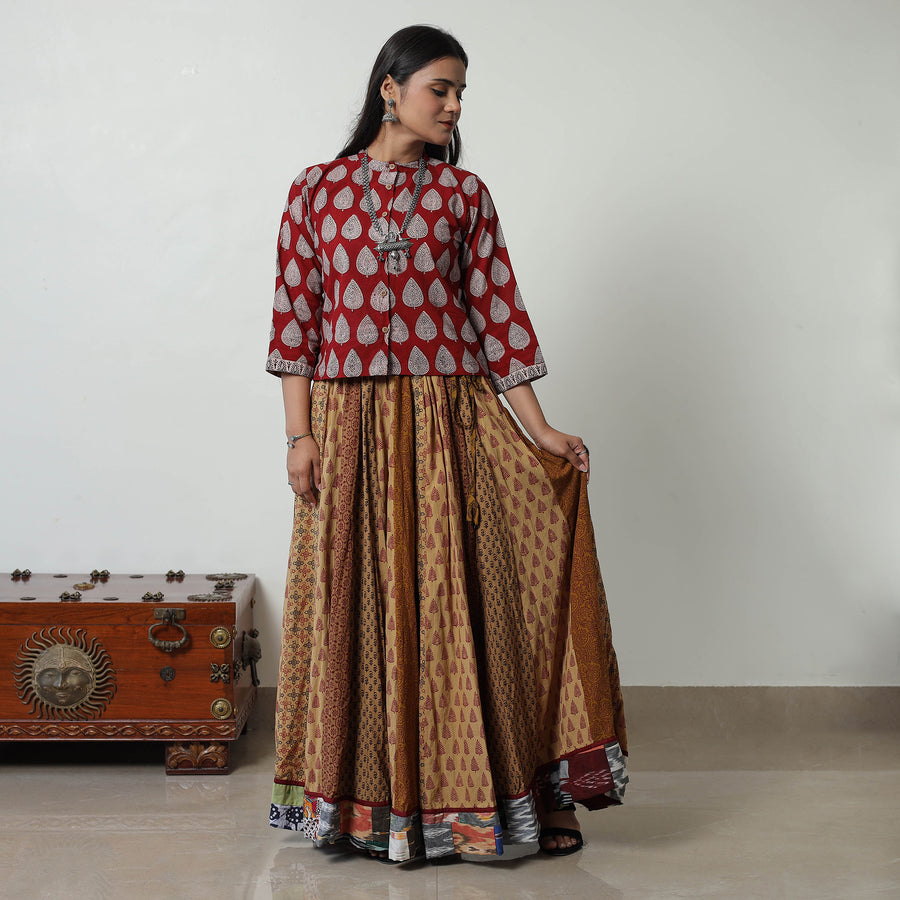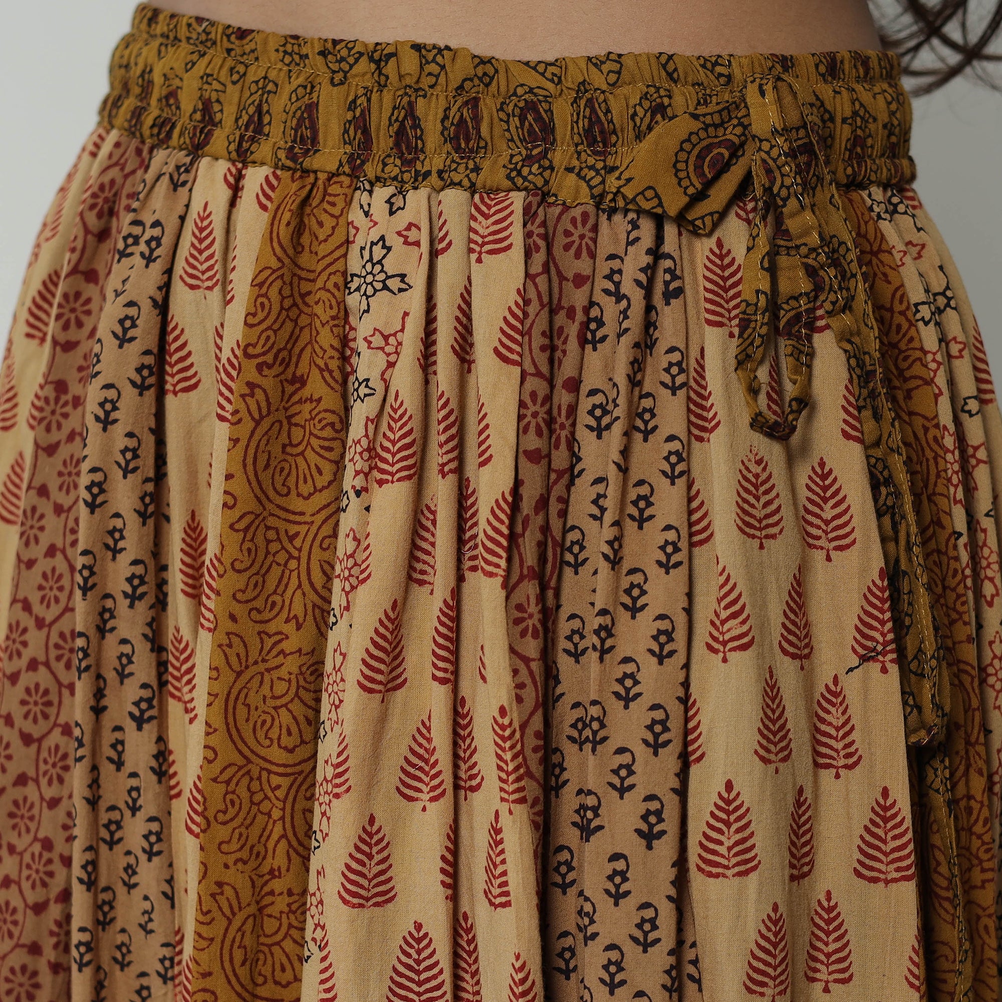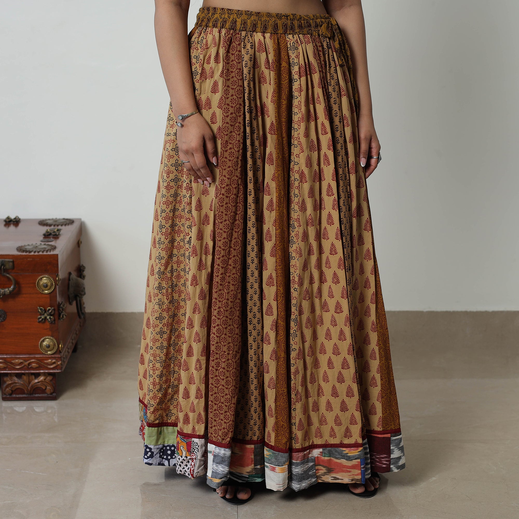 Enhance your ethnic wardrobe with our bagh block printed skirt. This stunning piece, made with the intricate Bagh printing technique from Madhya Pradesh, reflects the rich cultural heritage of India. The patchwork 24 Kali design adds a unique touch, while the waist tie-up ensures a comfortable fit.