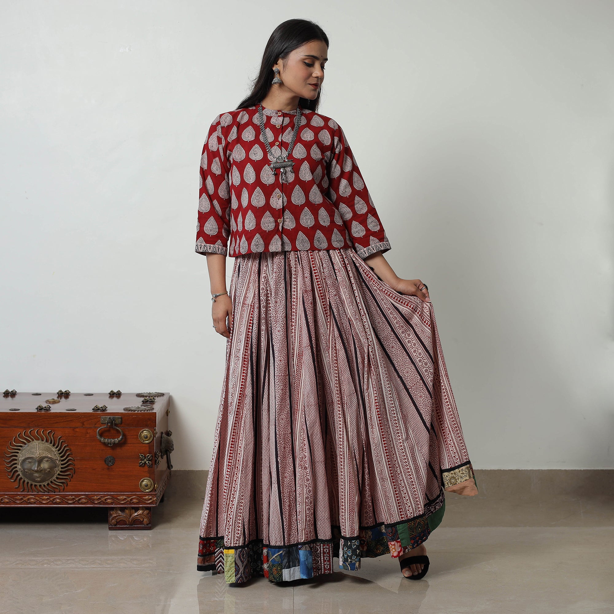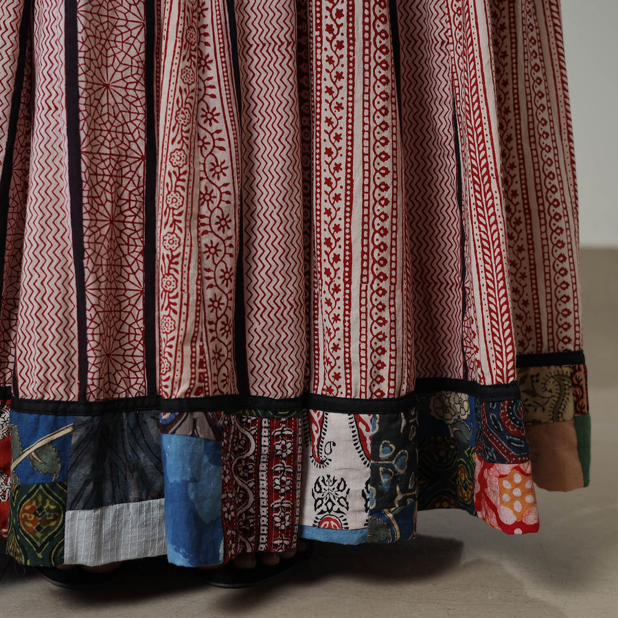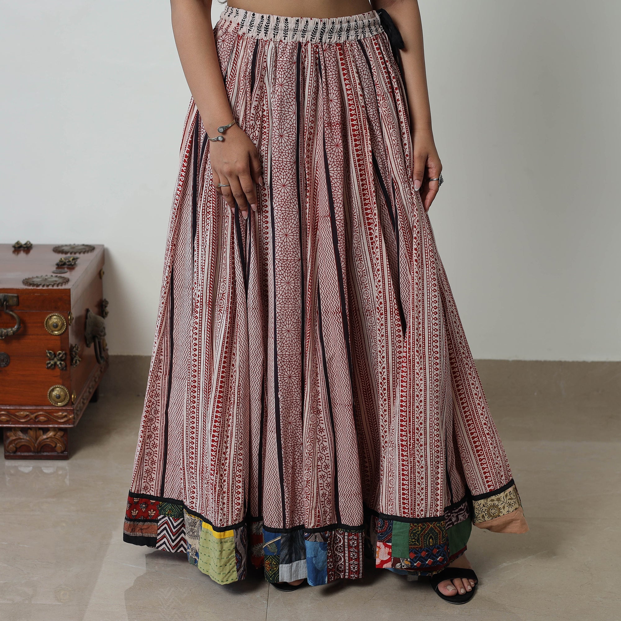 Enhance your ethnic wardrobe with our bagh block printed skirt. This stunning piece, made with the intricate Bagh printing technique from Madhya Pradesh, reflects the rich cultural heritage of India. The patchwork 24 Kali design adds a unique touch, while the waist tie-up ensures a comfortable fit.