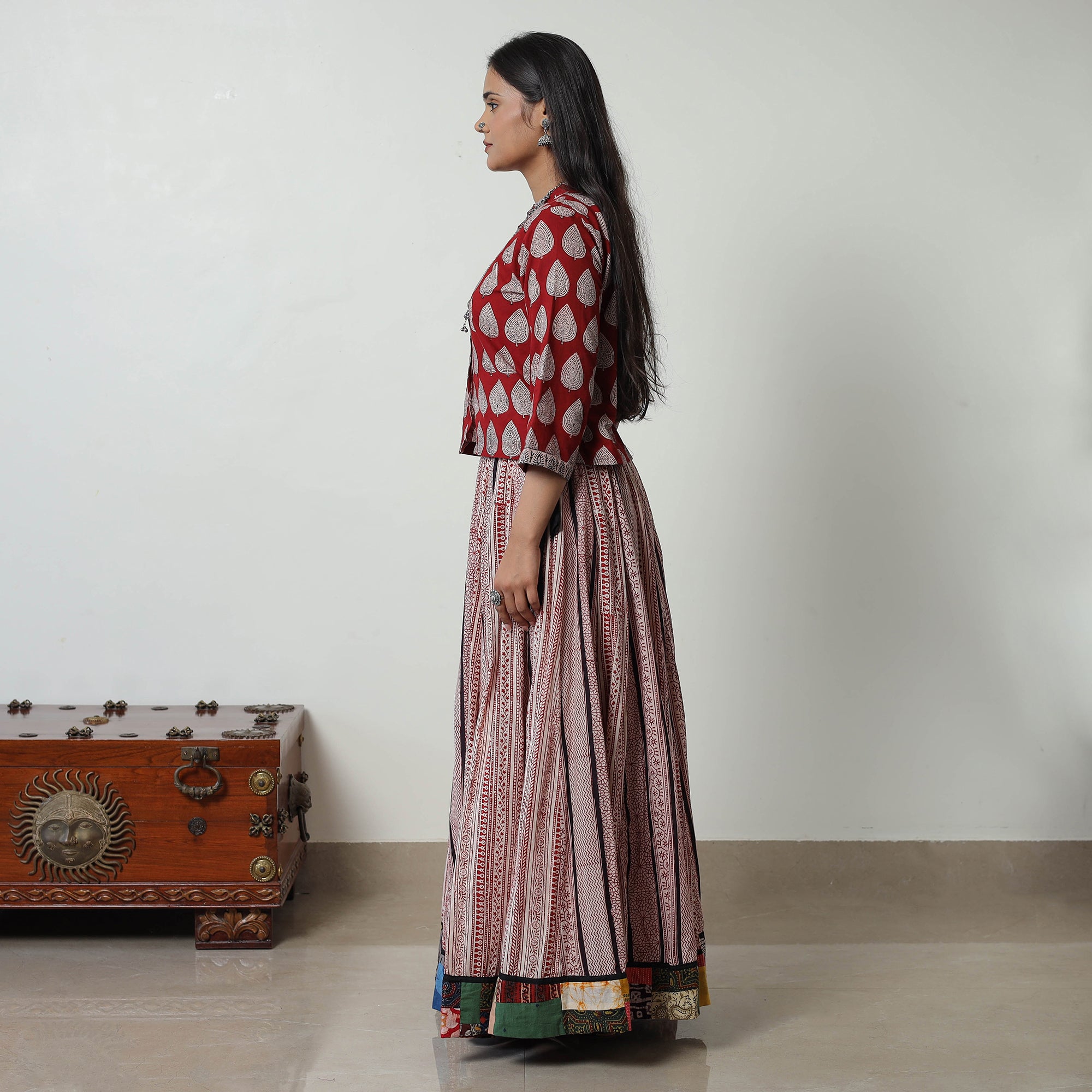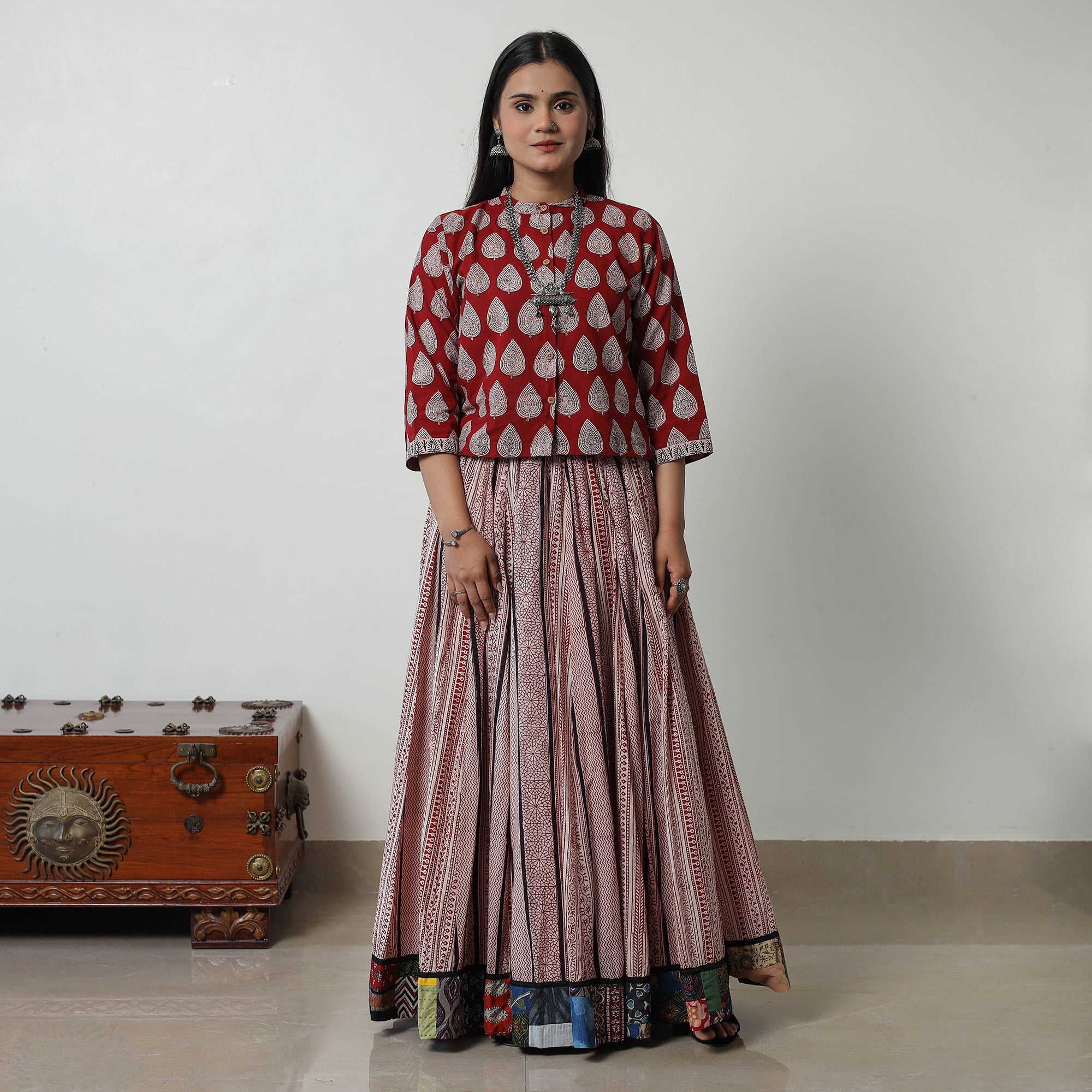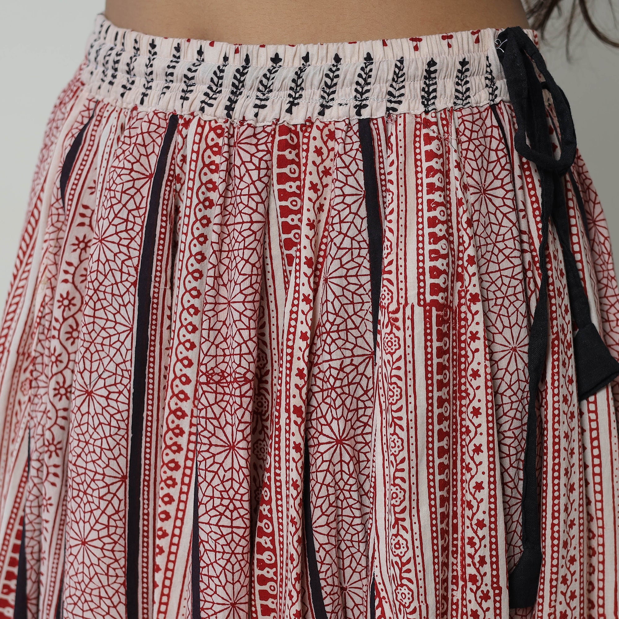 Enhance your ethnic wardrobe with our bagh block printed skirt. This stunning piece, made with the intricate Bagh printing technique from Madhya Pradesh, reflects the rich cultural heritage of India. The patchwork 24 Kali design adds a unique touch, while the waist tie-up ensures a comfortable fit.