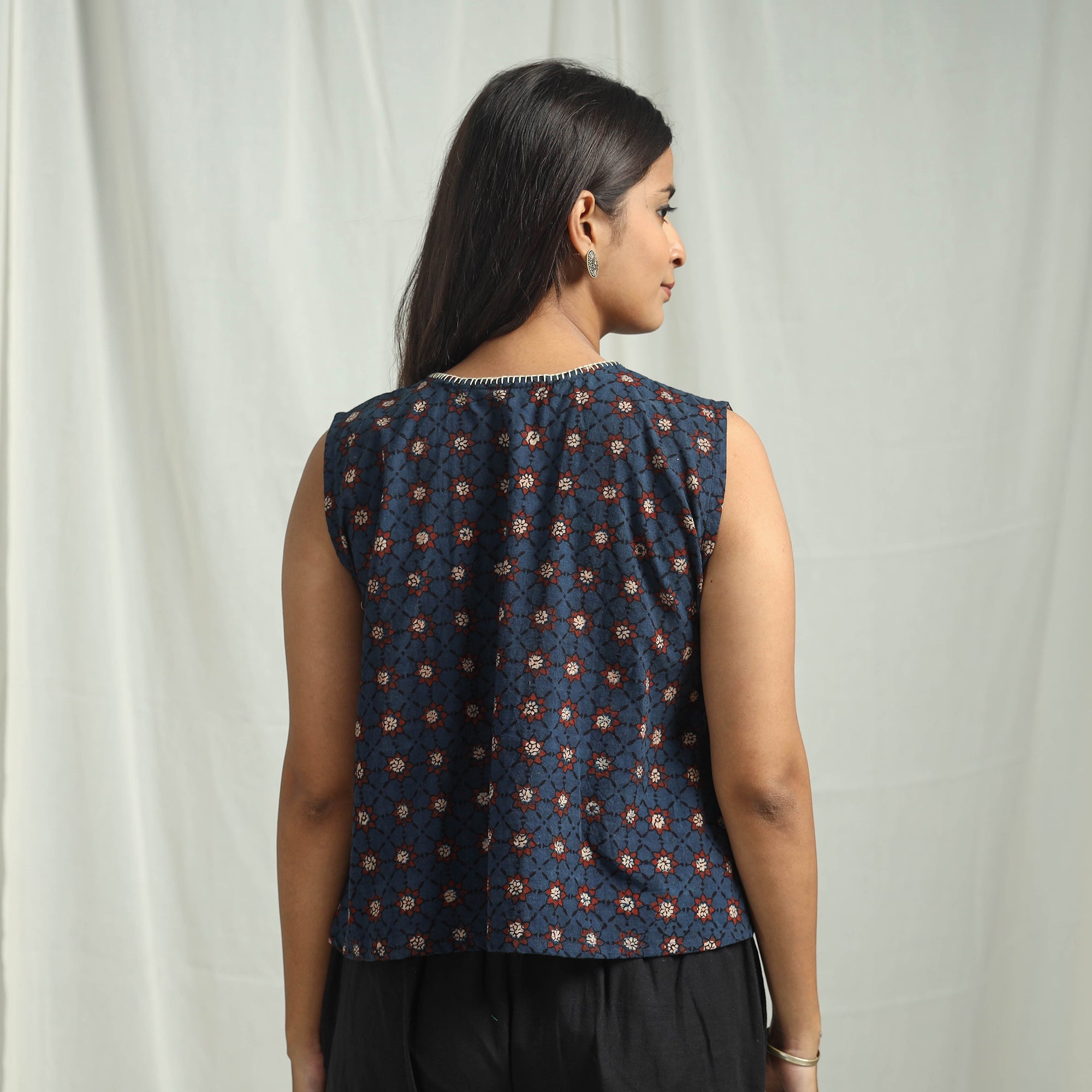 Elevate your wardrobe with this blue ajrakh block printed cotton crop top, a blend of traditional craftsmanship and modern style. Made from soft, breathable cotton and dyed using natural colors, this top ensures comfort and elegance for any occasion.