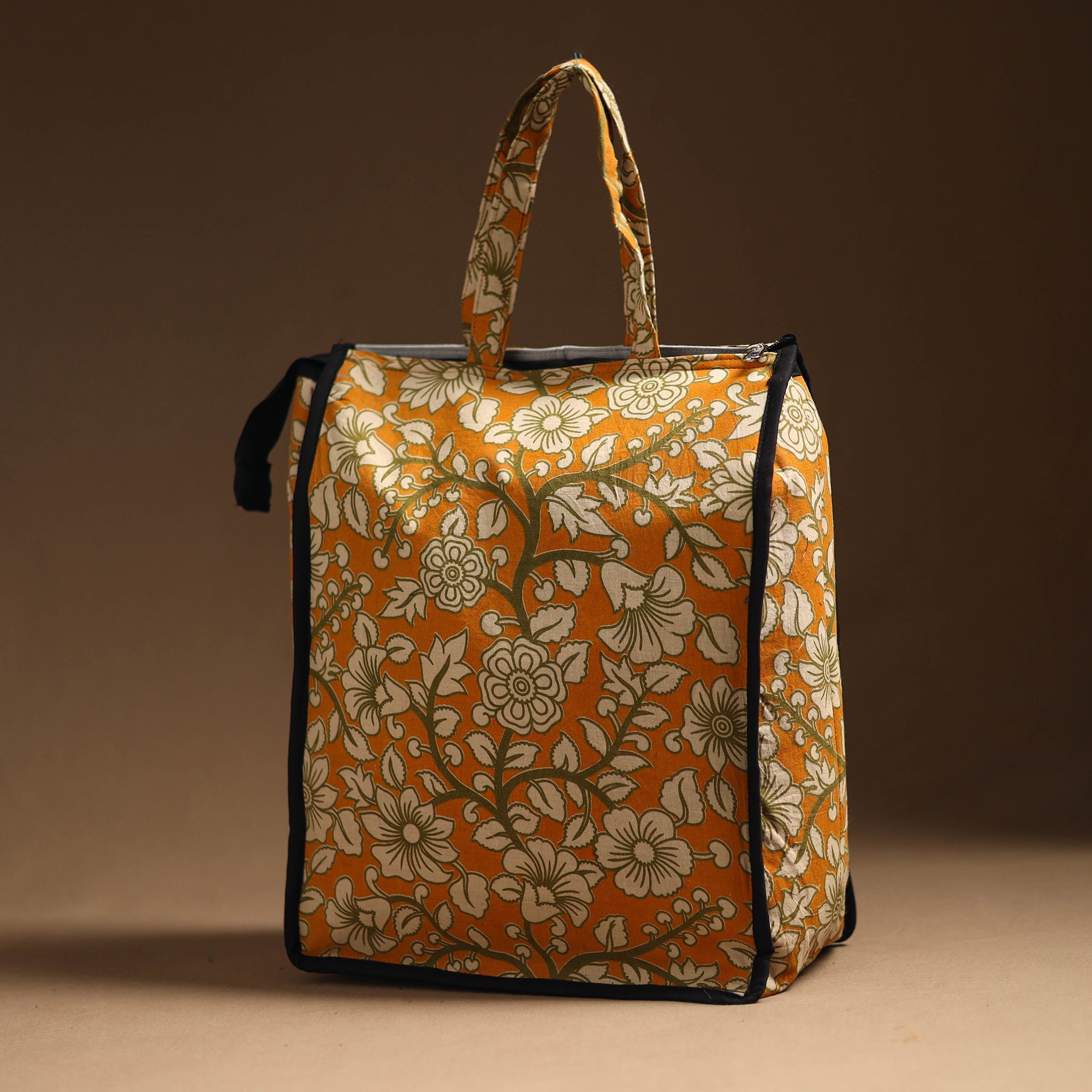 Step up your style with our orange handcrafted cotton shopping bag, designed for style and sustainability. Made from high-quality cotton, this bag is perfect for your daily shopping needs. Spacious and durable, it features a handy outer zipper pocket.
