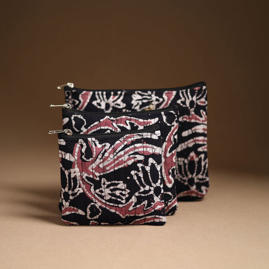 Keep your essentials organized with our handmade cotton utility pouch set. Each pouch is carefully crafted by skilled artisans, featuring a zip-lock closure and a foam layer lining for extra durability. This set is perfect for those who love eco-friendly, sustainable products.
