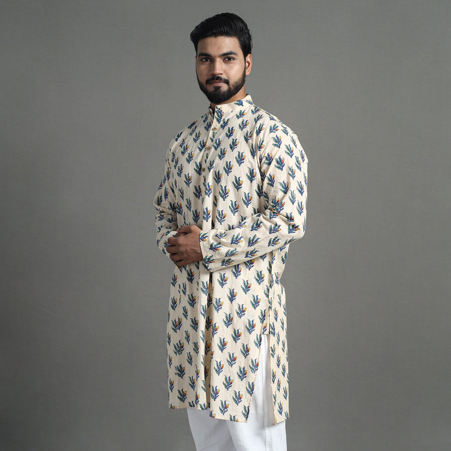 Experience the rich heritage of sanganeri craftsmanship with our men’s block-printed kurta. Handcrafted from soft, breathable cotton, this short kurta combines traditional artistry with modern comfort. Perfect for daily wear, it features a Chinese collar, full sleeves, and convenient side pockets.