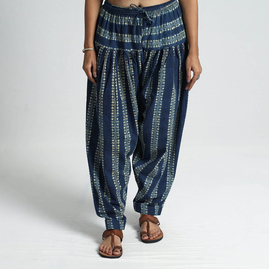 Elevate your everyday style with our ajrakh hand block printed cotton salwar. This salwar features an elasticated waist with a drawstring for a comfortable fit, making it ideal for daily wear. The intricate Ajrakh patterns, created using natural dyes, reflect centuries of traditional craftsmanship. With a convenient side pocket, this salwar is as practical as it is stylish.