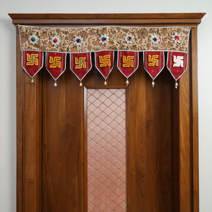The origins of toran can be traced back to Purana (a work of Hindu mythology). Torans are used to decorate the main entrance to a dwelling. The main idea behind decorating the house is to please and attract the goddess of wealth Lakshmi. This toran is the first to greet guests.