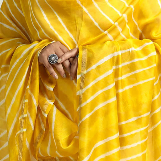Leheriya is a well-known traditional style of tie-dyeing that is practiced in Rajasthan. This particular technique is inspired by the word wave because the dyeing technique is often used to produce complex wave motifs.