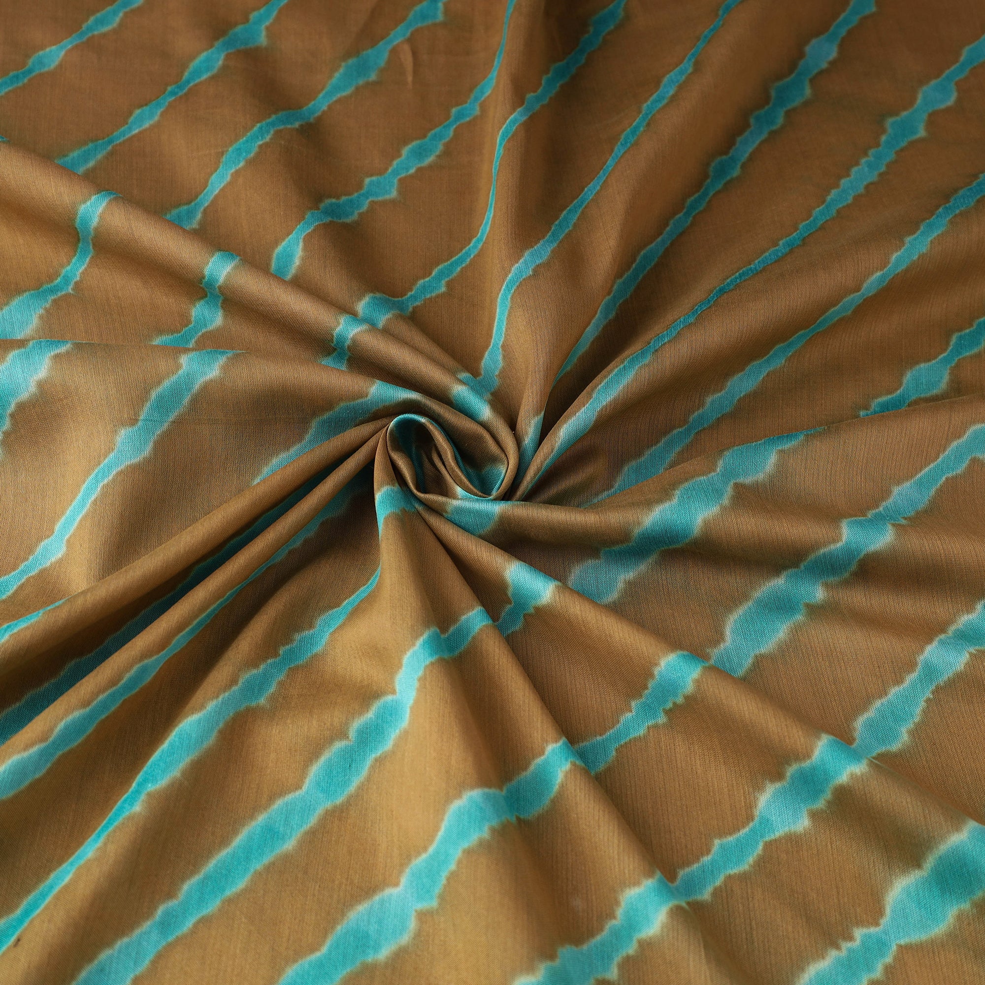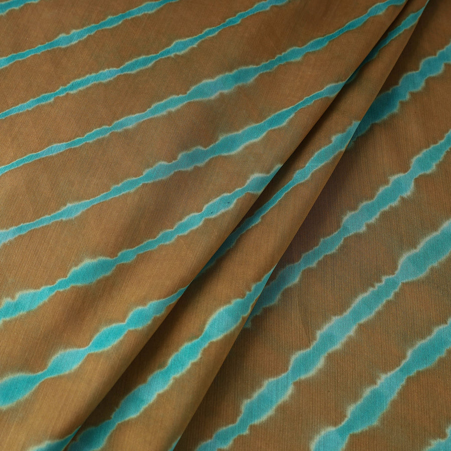 Brown Leheriya fabric, with its vibrant patterns, is a masterpiece of Rajasthani tie-dye craft. This Chanderi silk-cotton fabric, hand-dyed by Jaipur artisans, showcases the unique Leheriya technique passed down through generations. The fluid waves of color make it perfect for those who cherish cultural heritage and sustainable fashion.