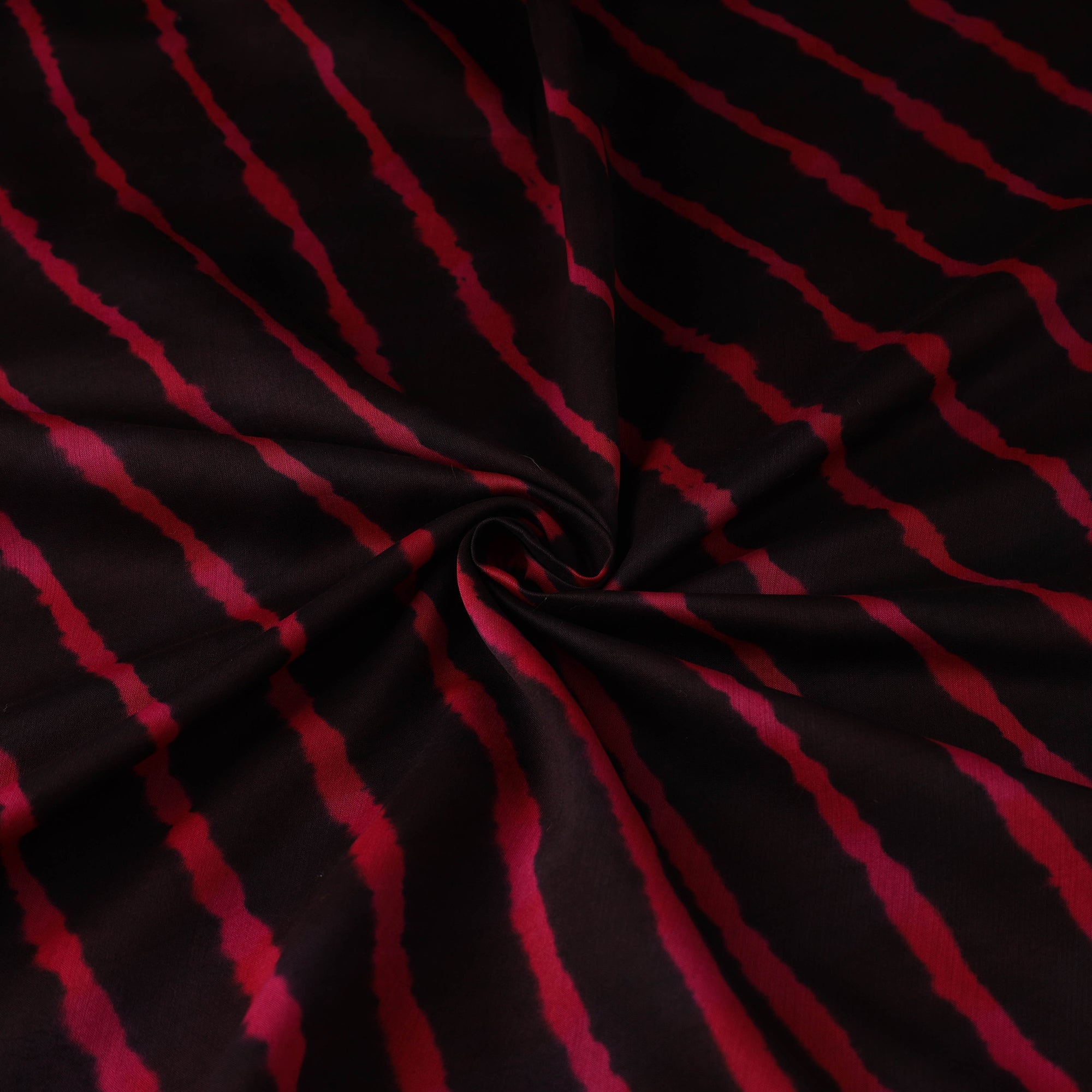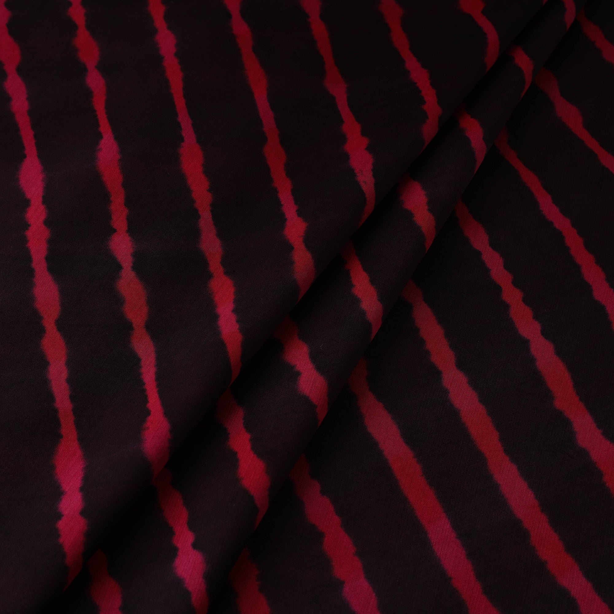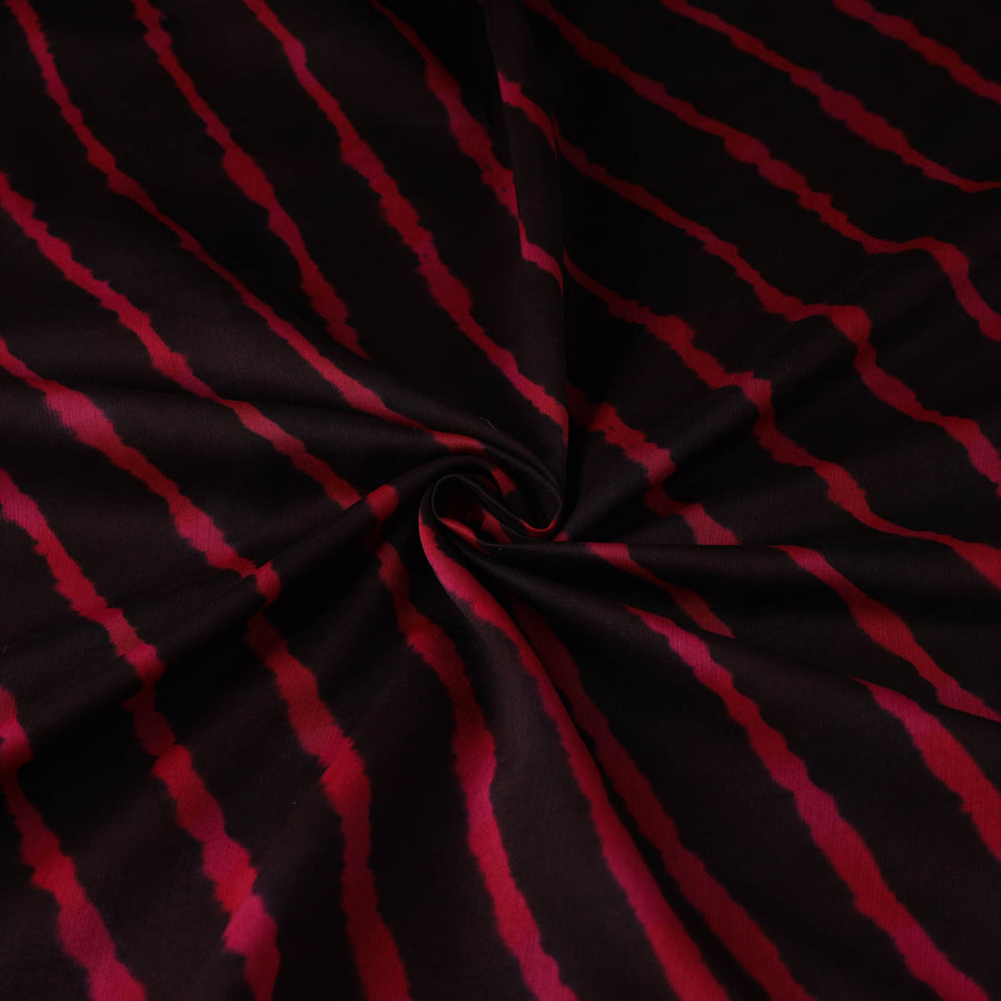 Black Leheriya fabric, with its vibrant patterns, is a masterpiece of Rajasthani tie-dye craft. This Chanderi silk-cotton fabric, hand-dyed by Jaipur artisans, showcases the unique Leheriya technique passed down through generations. The fluid waves of color make it perfect for those who cherish cultural heritage and sustainable fashion.