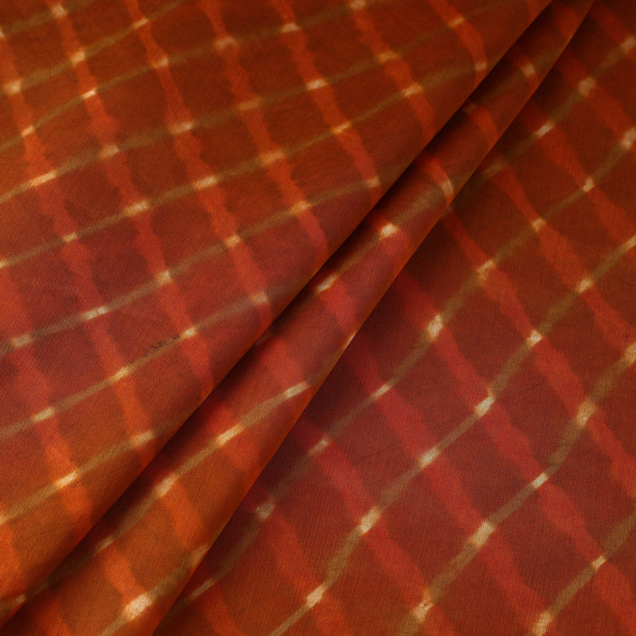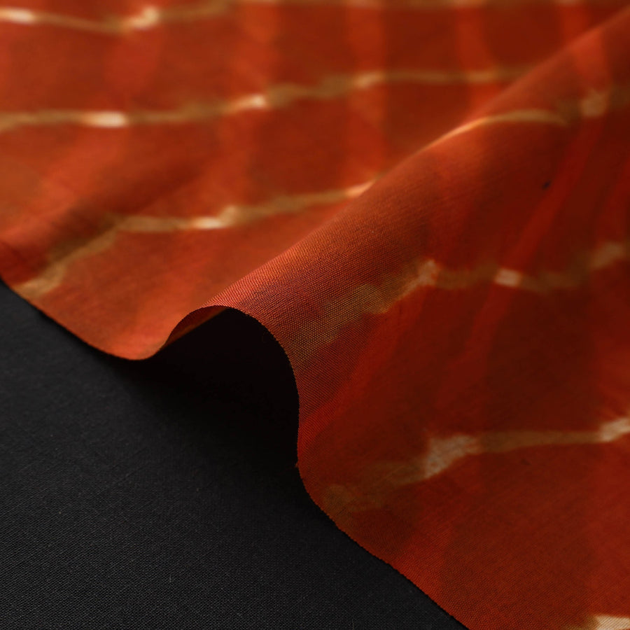 Orange Leheriya mothra fabric is a true representation of rajasthan's traditional tie-dye artistry. The wavy patterns on this fabric have been dyed using the leheriya tie and dye technique through the traditional process by the master artisan family of Badshah Miyan from the state of Rajasthan.