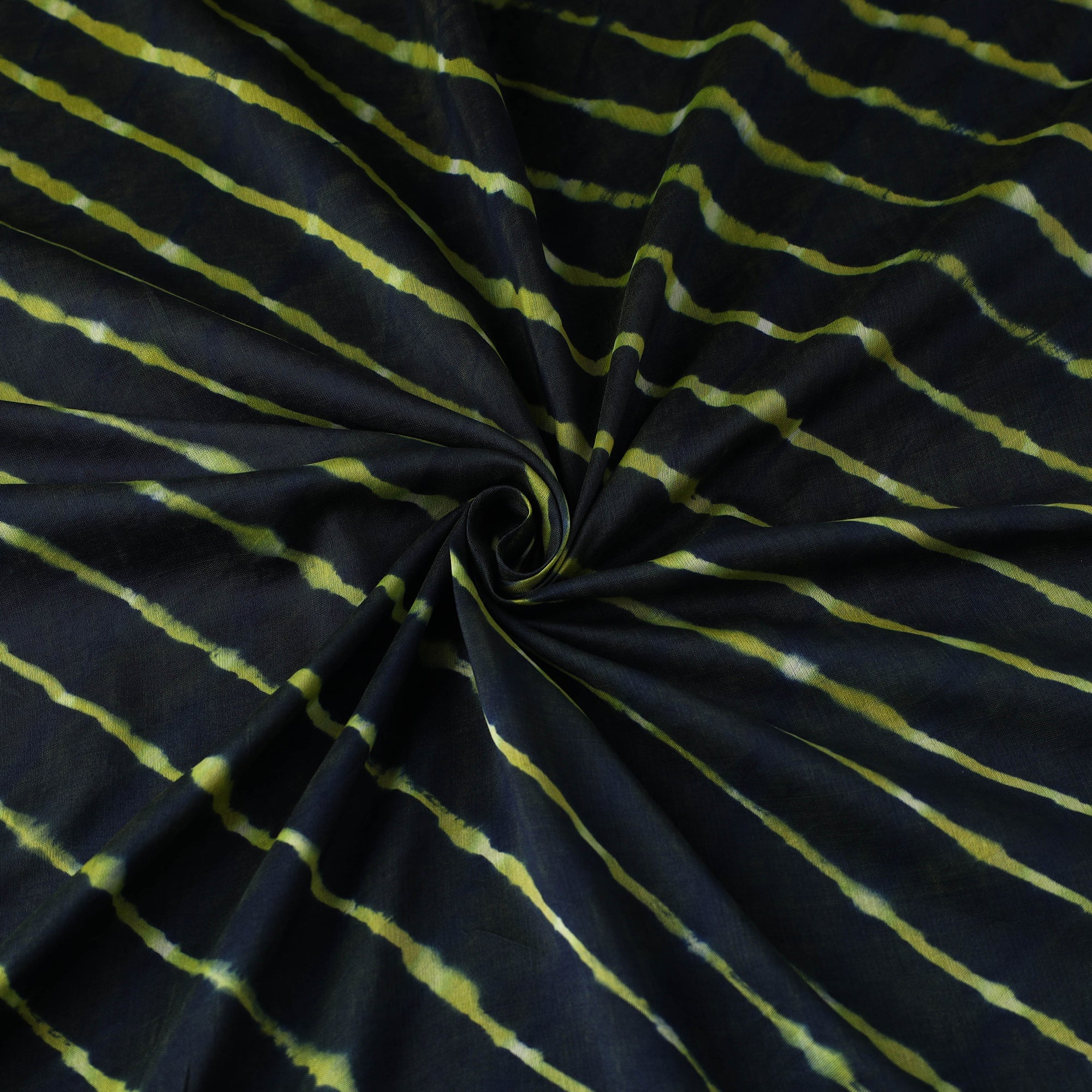 Black Leheriya fabric, with its vibrant patterns, is a masterpiece of Rajasthani tie-dye craft. This Chanderi silk-cotton fabric, hand-dyed by Jaipur artisans, showcases the unique Leheriya technique passed down through generations. The fluid waves of color make it perfect for those who cherish cultural heritage and sustainable fashion.