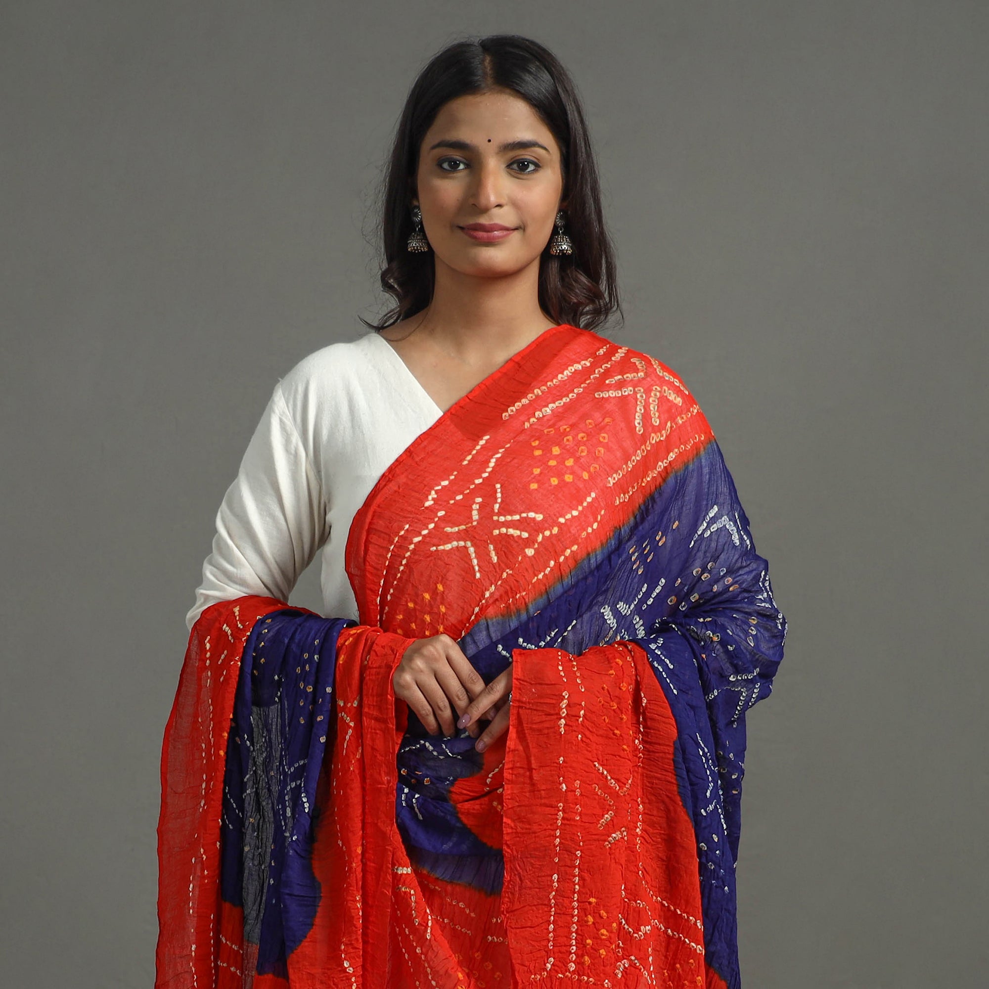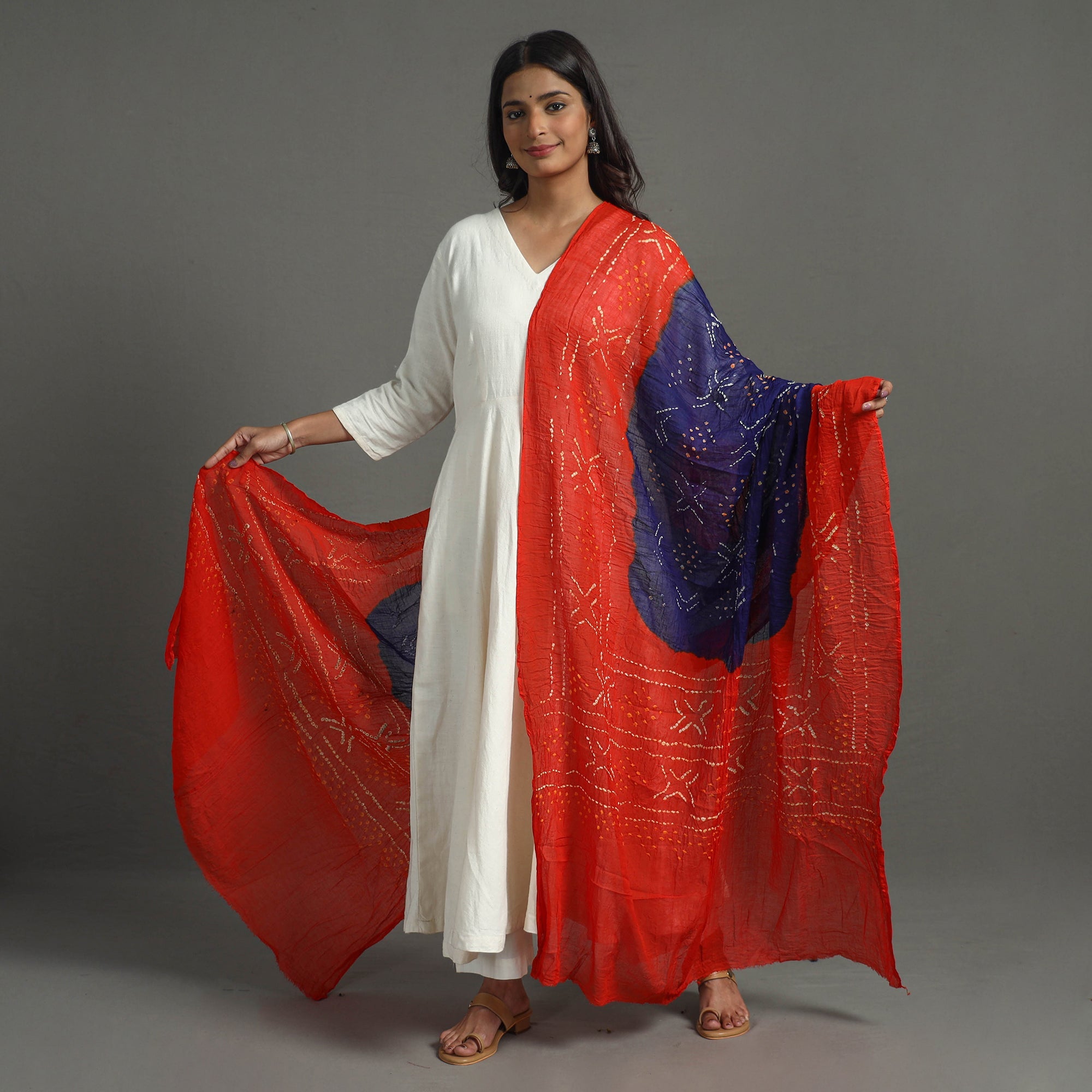 Experience the timeless beauty of kutch with our cotton bandhani dupatta, a masterpiece of traditional tie-dye artistry. The bandhej dupatta features a majestic bandhani pattern, created by tying the fabric with thread at several points before dyeing it. Crafted by skilled artisans, each piece showcases the intricate patterns unique to bandhani craft, reflecting India’s rich cultural heritage.