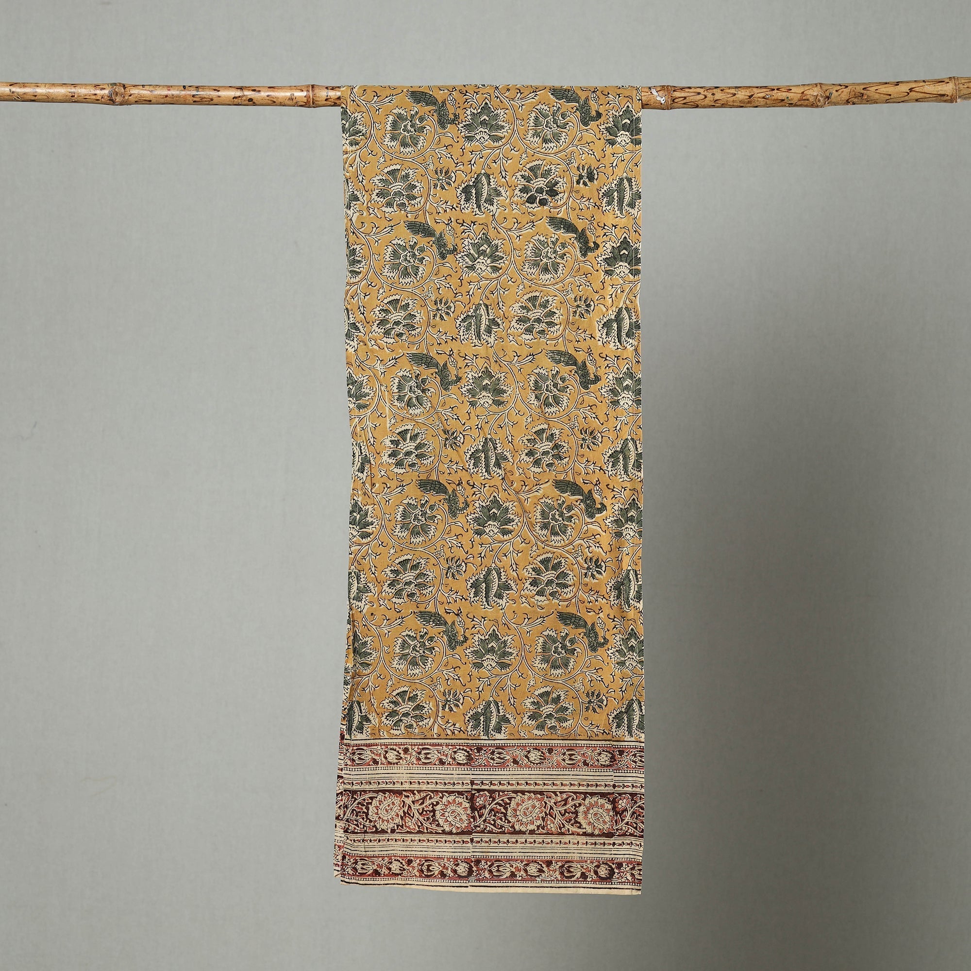 | Material | Step into the world of kalamkari with this exquisite yellow cotton kalamkari stole. Handcrafted by artisans from Pedana, this stole features intricate block prints inspired by traditional kalamkari art. The natural dyes used reflect the sustainable practices that make this piece special. |