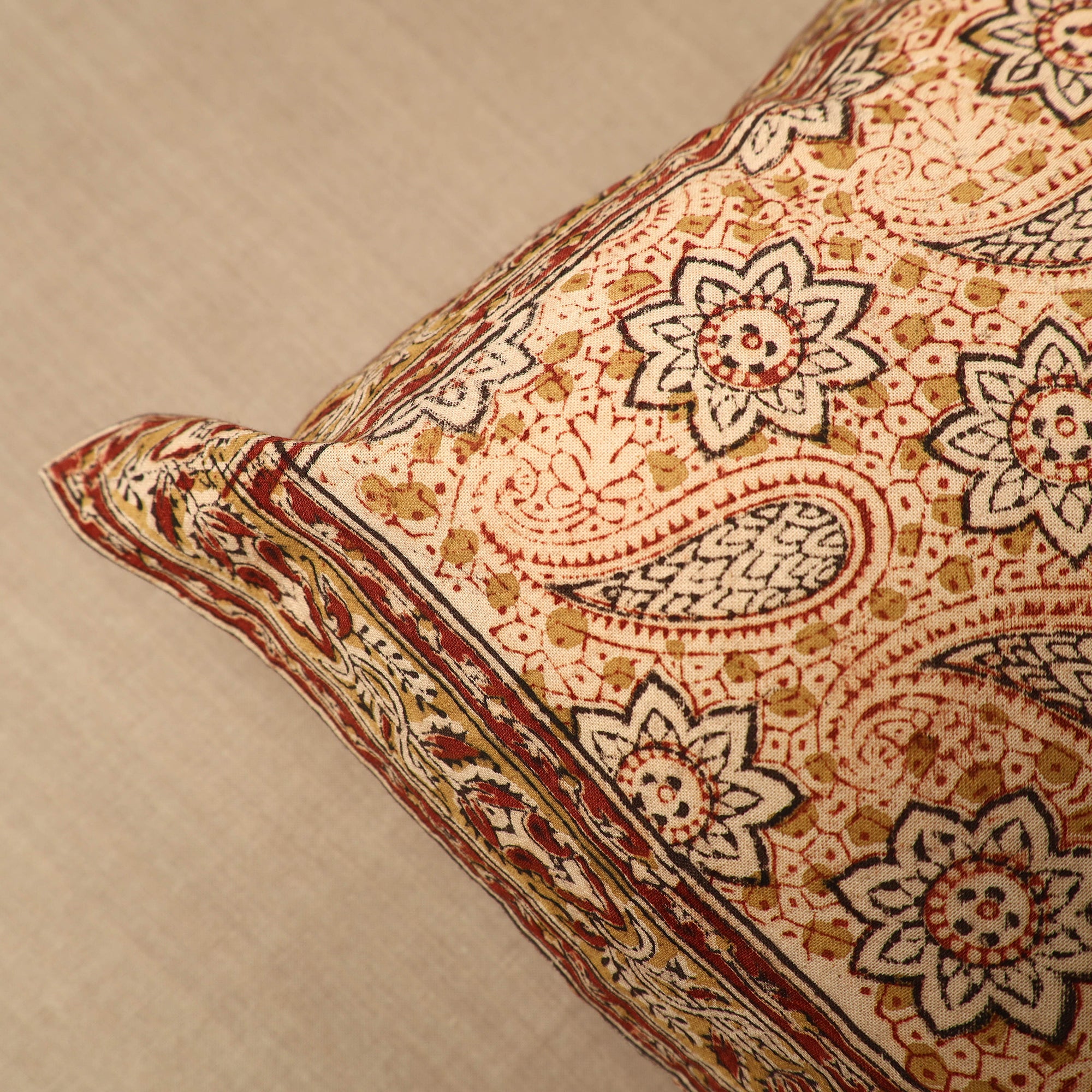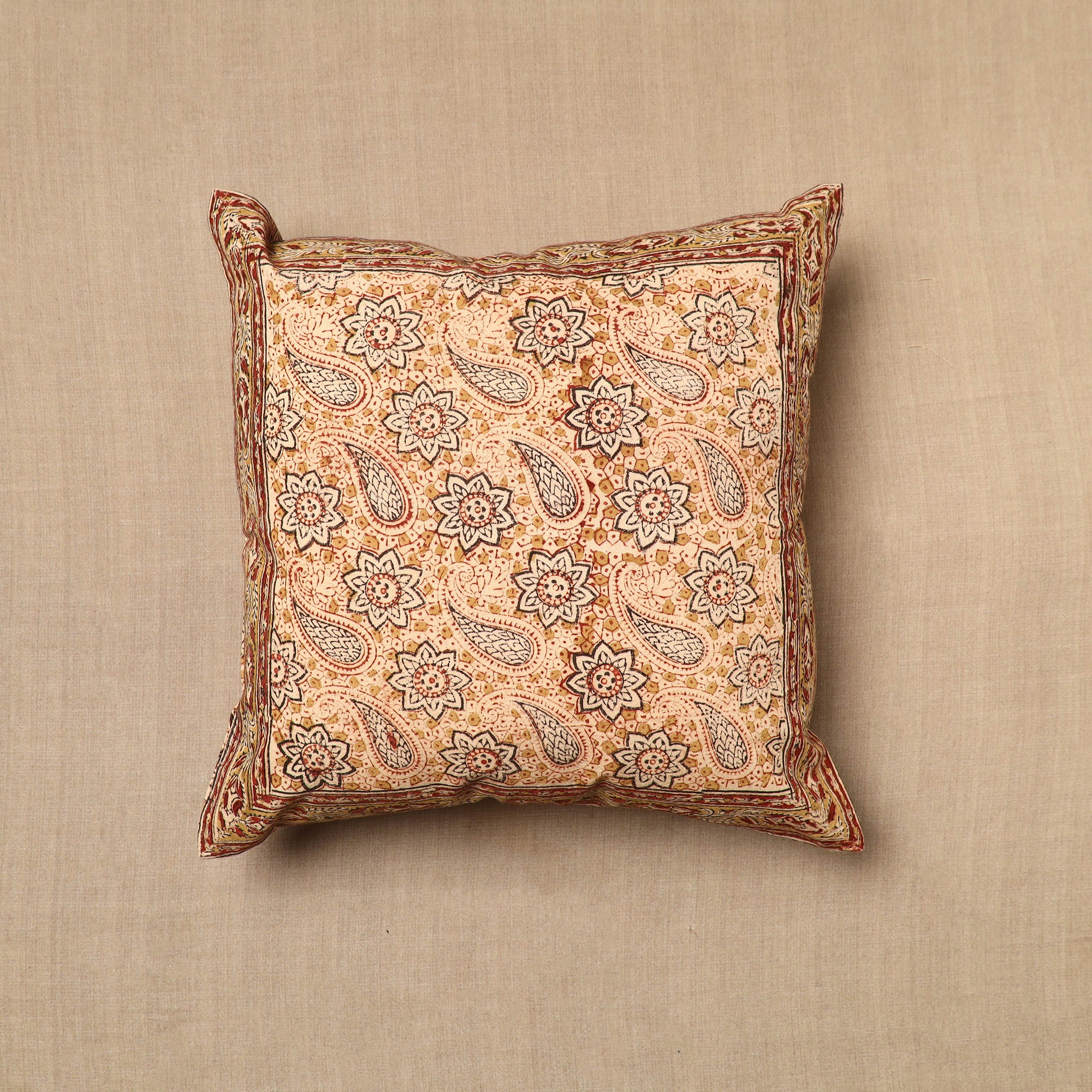 Enhance your home decor with this beige cotton kalamkari print cushion cover, skillfully handcrafted by the artisans of Pedana. Featuring traditional Kalamkari motifs, Made with fine quality cotton and intricate block printing techniques, it’s perfect for adding a touch of elegance to any room.