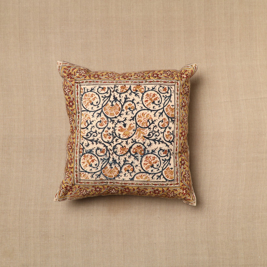 Enhance your home decor with this beige cotton kalamkari print cushion cover, skillfully handcrafted by the artisans of Pedana. Featuring traditional Kalamkari motifs, Made with fine quality cotton and intricate block printing techniques, it’s perfect for adding a touch of elegance to any room.