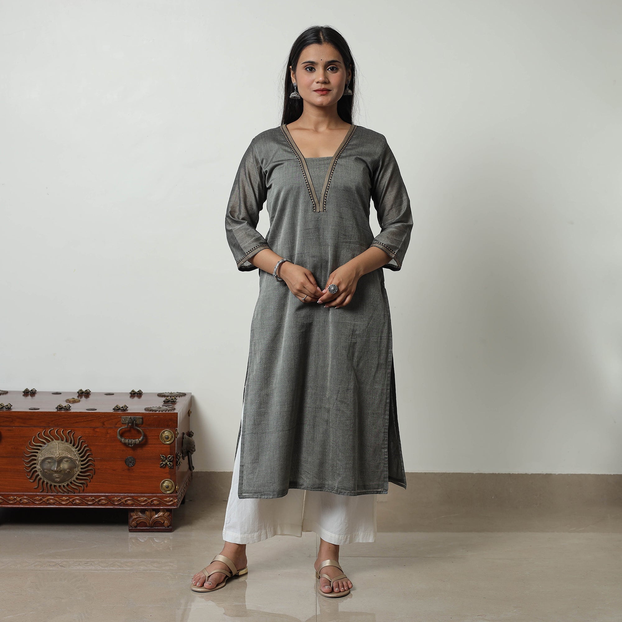 Elevate your wardrobe with our dharwad mercerised cotton kurta, showcasing traditional craftsmanship with a touch of modern elegance. This straight kurta features unique dharwad border designs and a handy side pocket, crafted from premium cotton for comfort and style. The dharwad region is renowned for its exquisite textile heritage, and this kurta reflects that rich tradition.