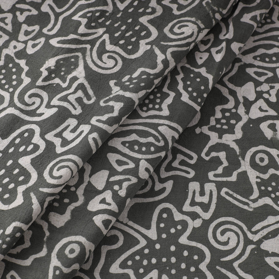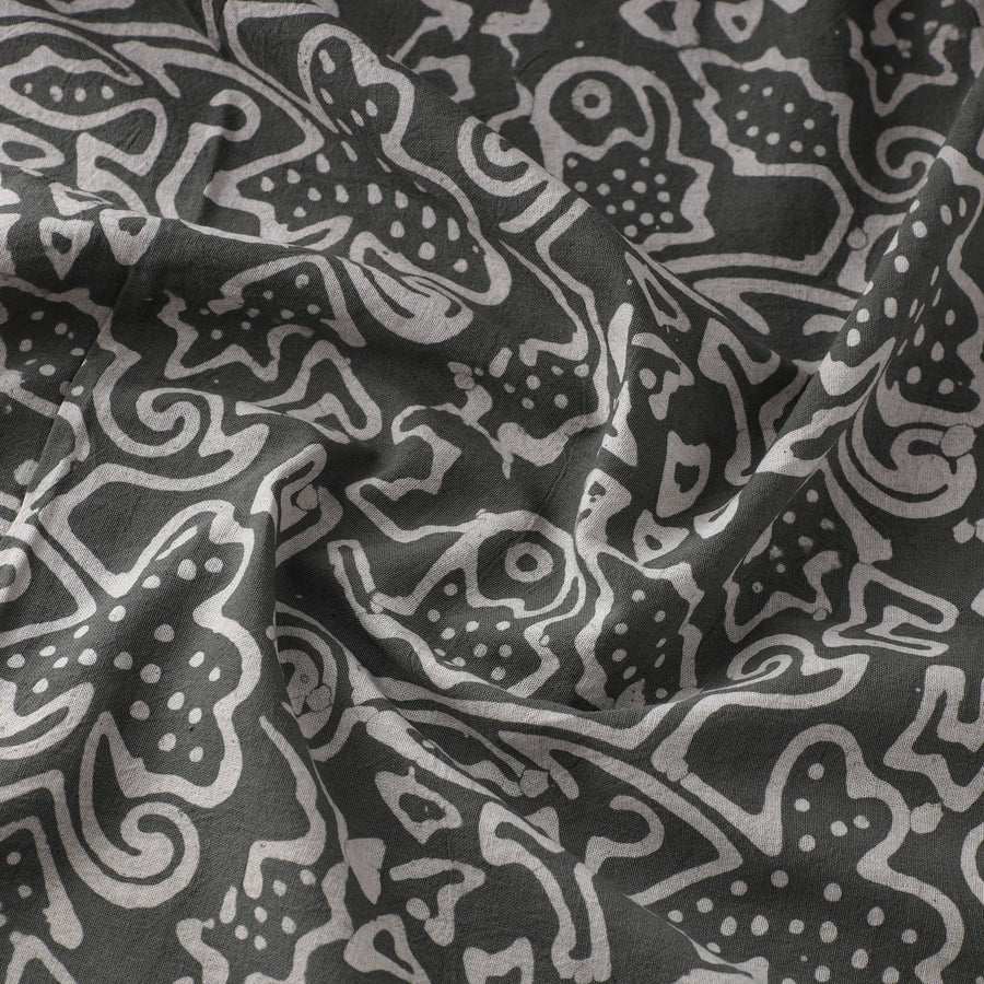 Indulge in the traditional craftsmanship with our kutch grey cotton batik print fabric. Batik is a type of resist printing process in which wax is applied to the fabric in specific areas, a craft that has been perfected over generations in India. It offers durable, comfortable, and visually striking textile, perfect for creating unique garments or home decor.