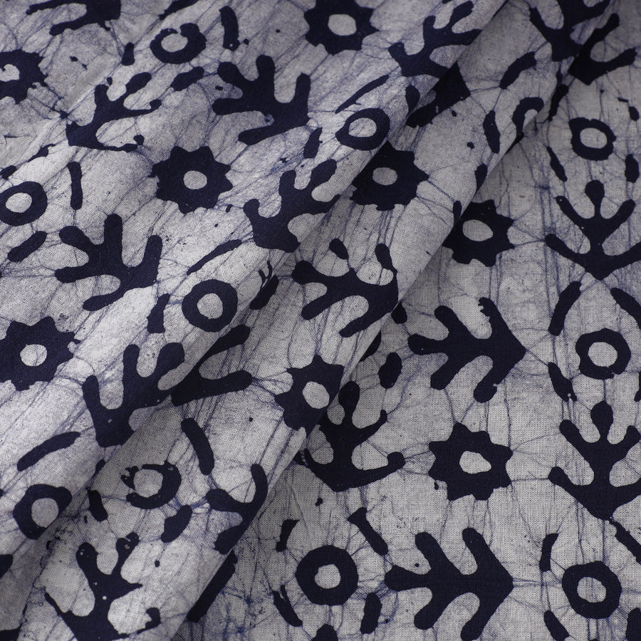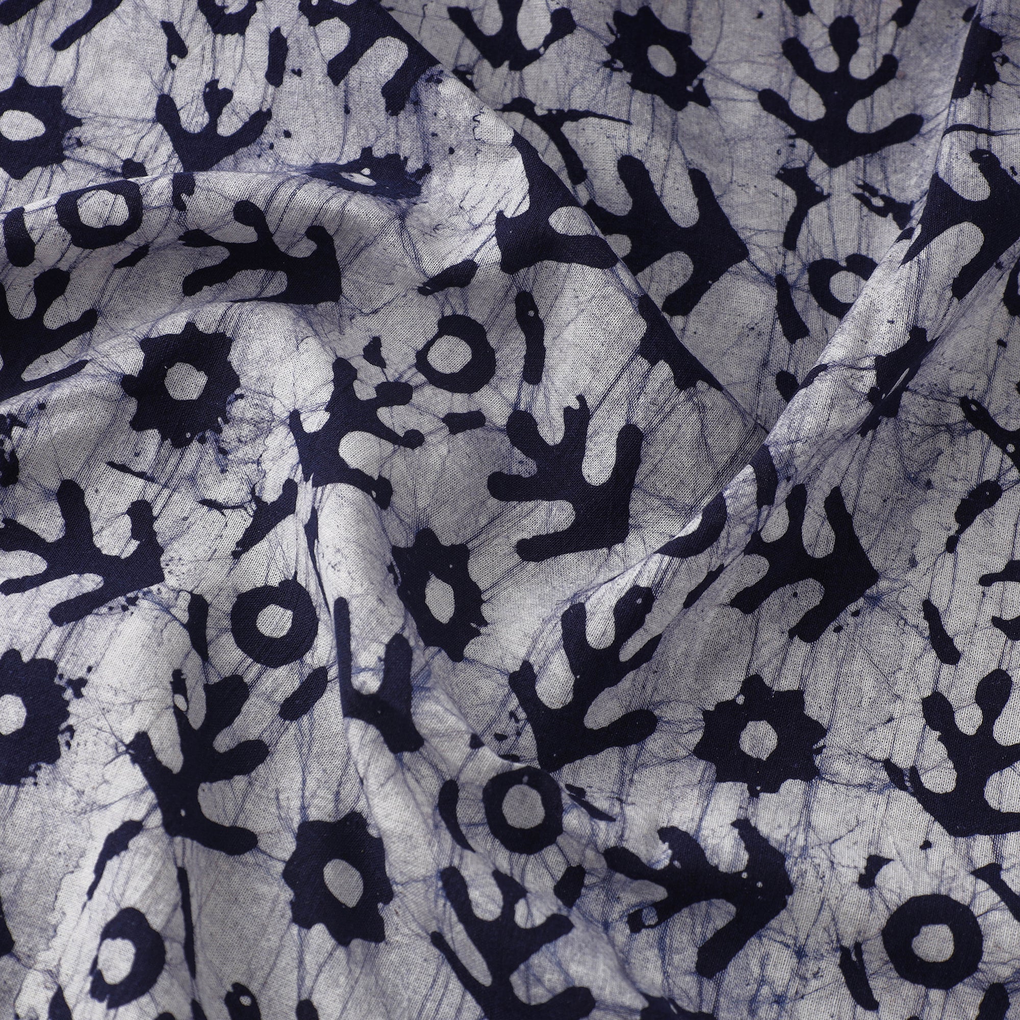Indulge in the traditional craftsmanship with our kutch cotton blue batik print fabric. Batik is a type of resist printing process in which wax is applied to the fabric in specific areas, a craft that has been perfected over generations in India. It offers durable, comfortable, and visually striking textile, perfect for creating unique garments or home decor.