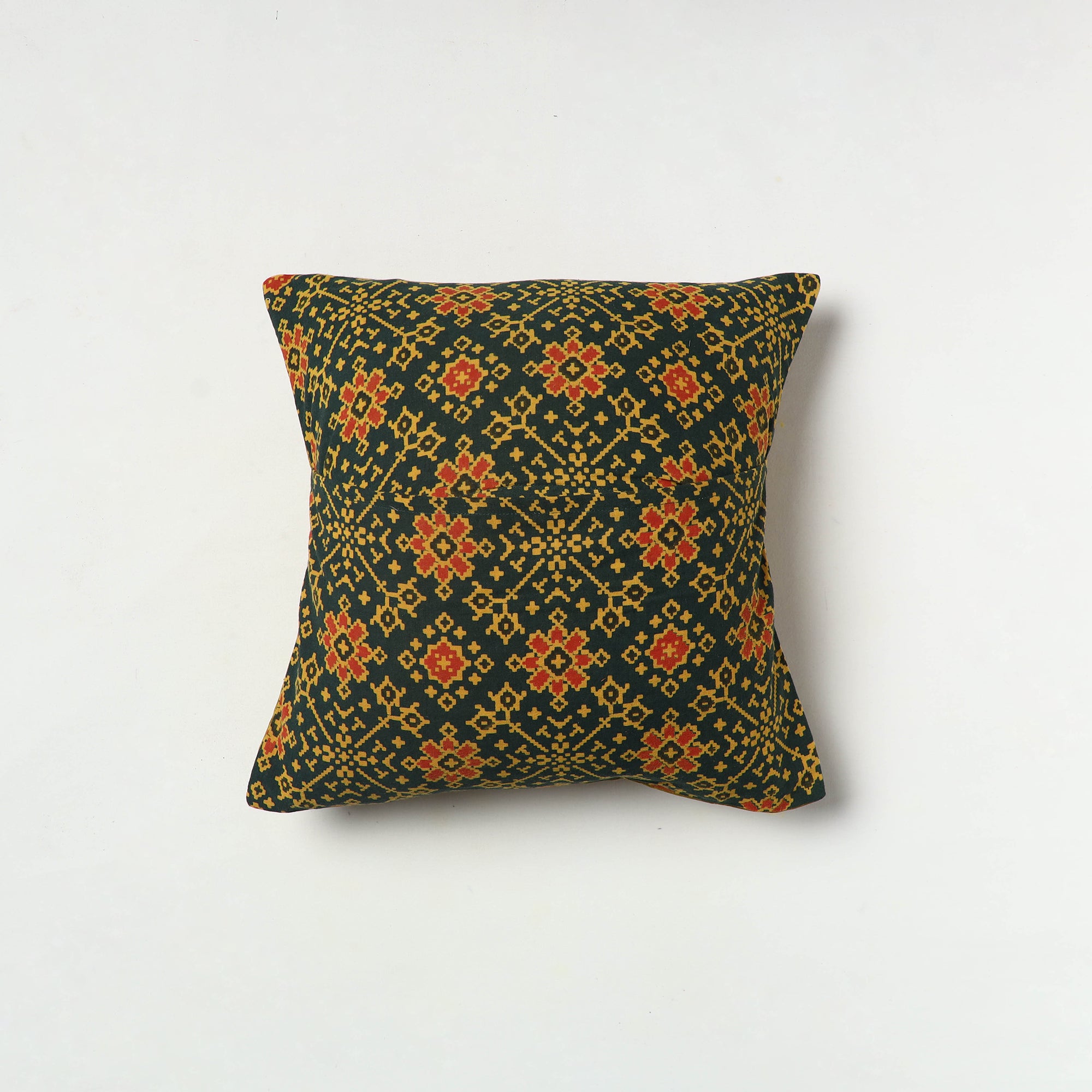 • Green - Kutch Embroiderd Mashru Silk Ajrakh Print Cushion Cover 07