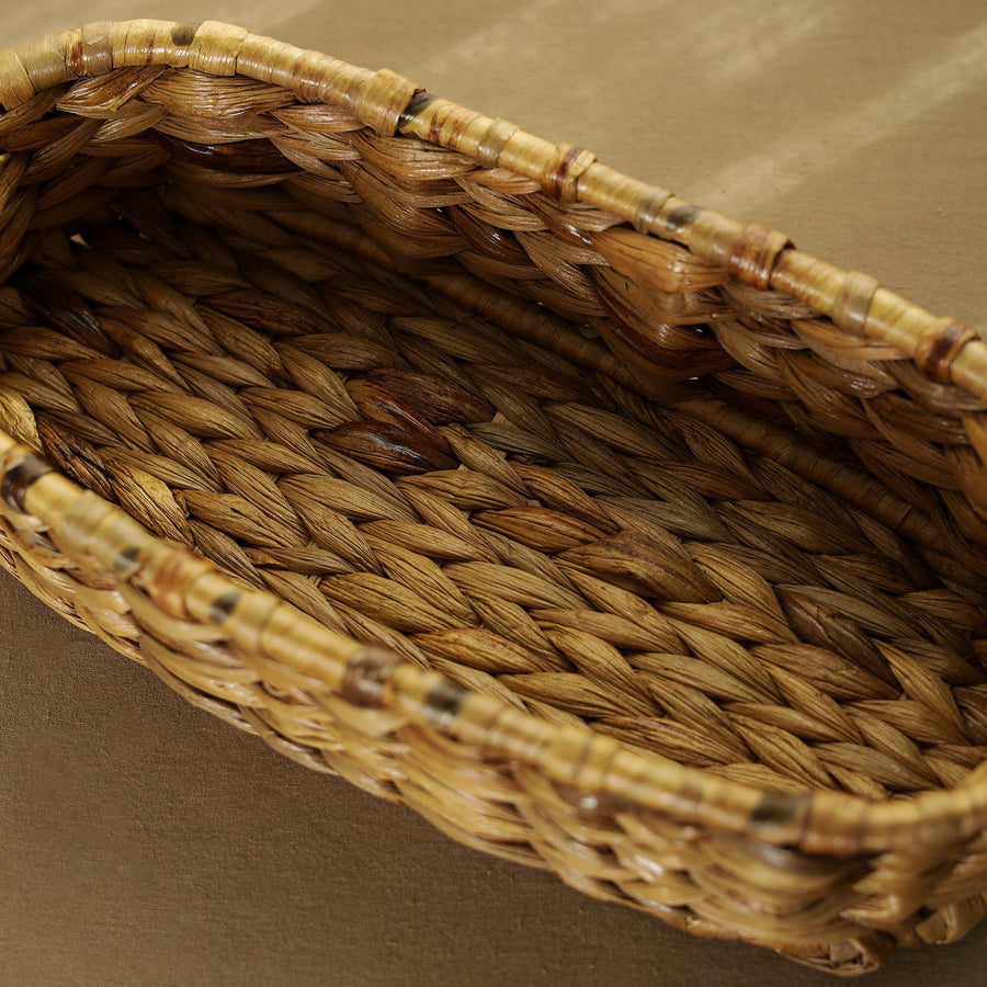 This multipurpose hand-woven organic water hyacinth brown tray woven by skilled artisans, with unique patterns made from naturally dried water hyacinth reed fiber. Perfect for serving or as a decorative piece, it’s a must-have for any eco-conscious home. Water Hyacinth products are completely natural and Eco-friendly.