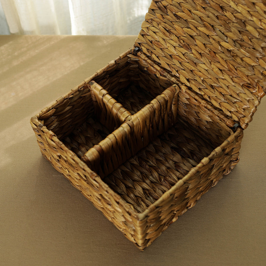 Elevate your home with our brown handmade wicker basket, crafted from organic water hyacinth by skilled artisans. This eco-friendly basket not only serves as a versatile storage solution but also adds a touch of rustic charm to any space.