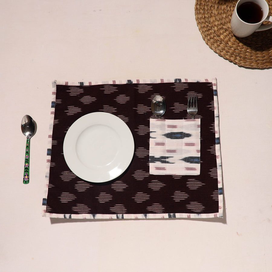 Add a cultural touch to your dining space with our maroon handcrafted ikat cotton table mats. It protects surfaces while showcasing artistic craftsmanship. Made by skilled artisans, these table mats offer not just protection but also adding a touch of elegance to your table setting.