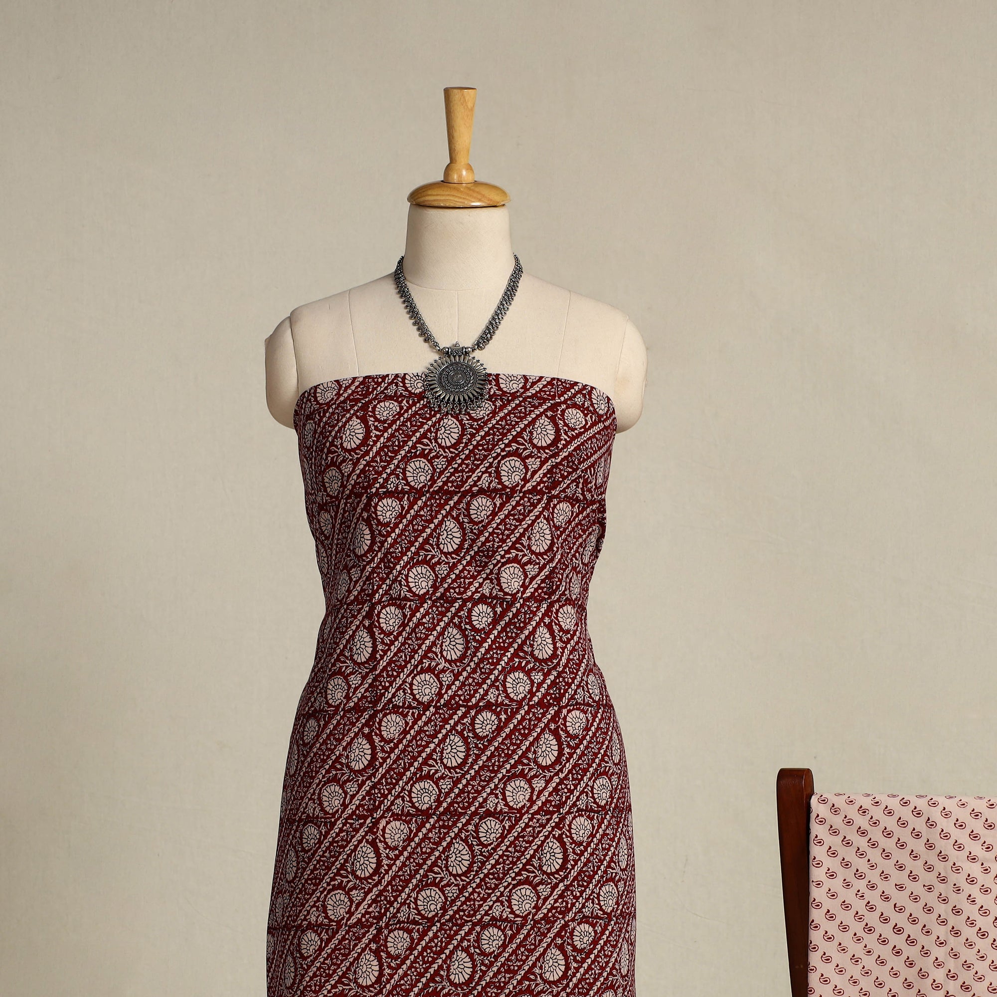 Experience the timeless artistry of hand printing with this red 3-piece cotton bagh print suit material set. Crafted with natural dyes by master artisan umar faruk khatri from Madhya Pradesh, this ensemble offers supreme comfort and eco-friendly style. Ideal for any occasion, this set includes a top, bottom, and dupatta.